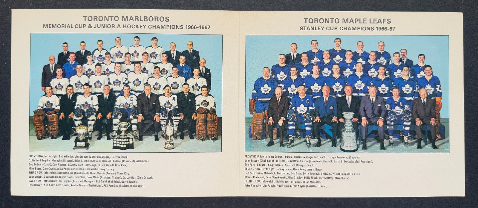 - Issued by Maple Leaf Gardens, the card opens to team photos of the 1967 Stanley Cup Champion Toronto Maple Leafs and the 1967 Memorial Cup and Juinor A Champion Toronto Marlboros. Rare historical Christmas card