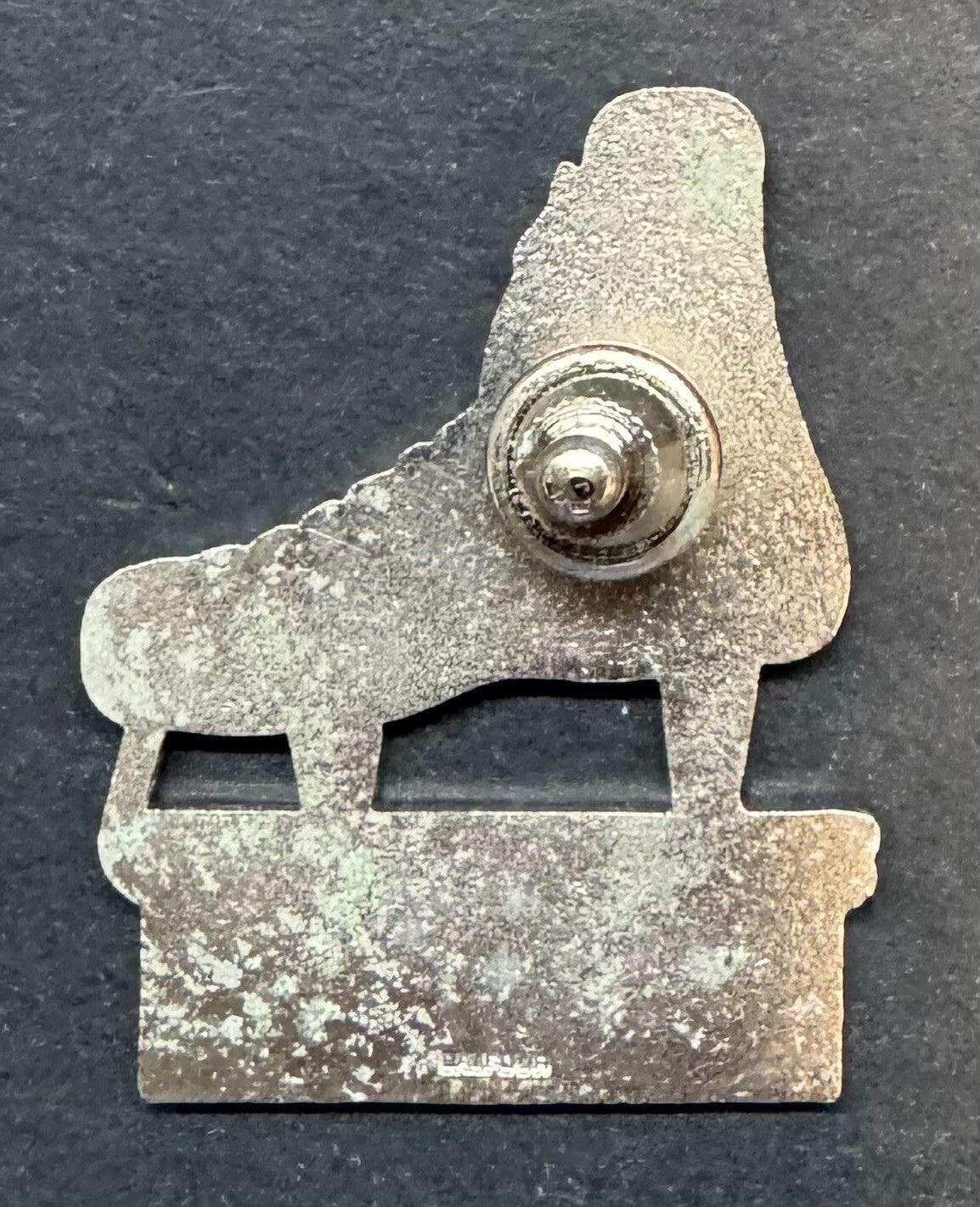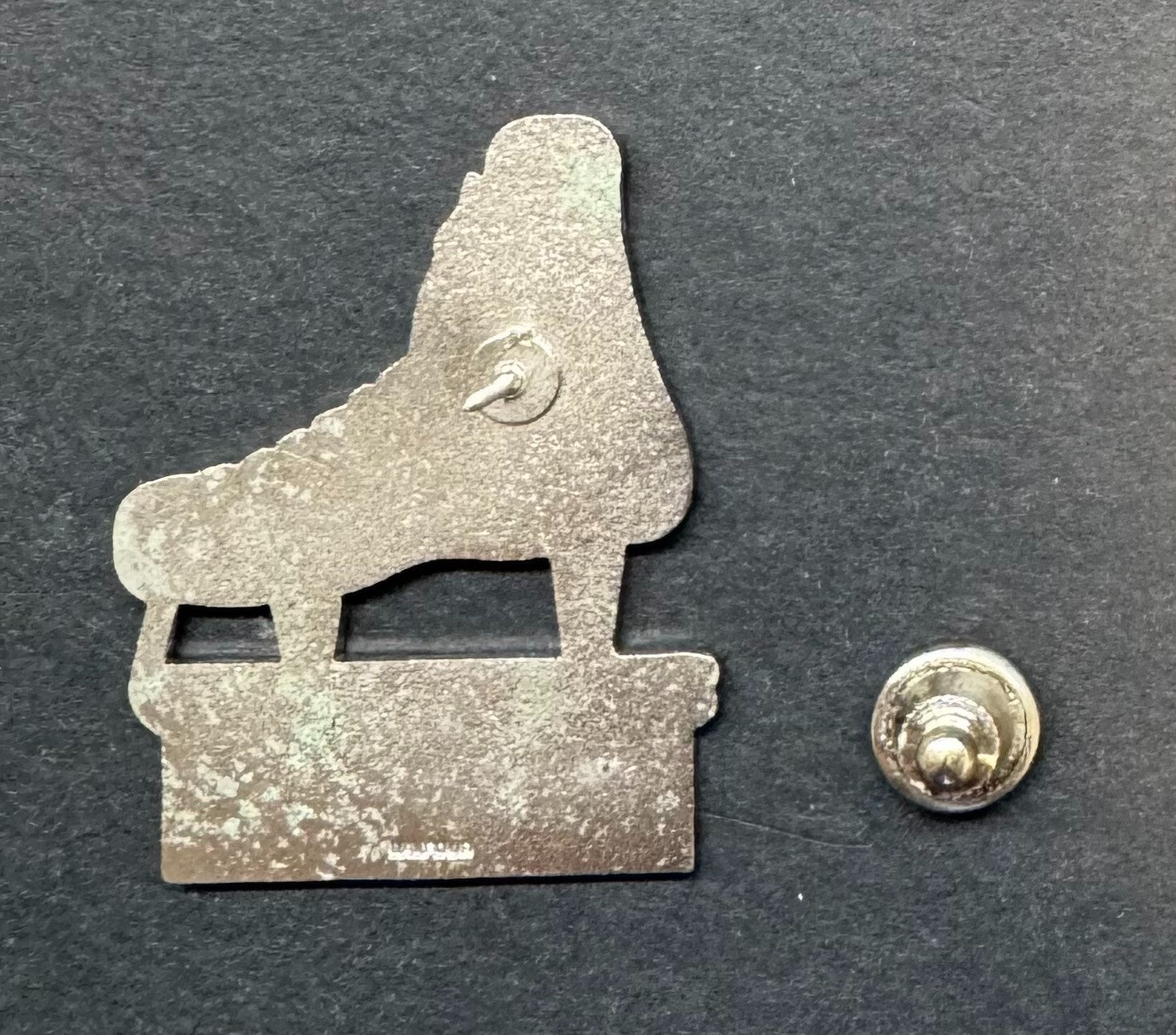 - Excellent condition; some spots of residue on both sides of the pin otherwise minimal signs of visible handling wear. Graphic presents very well. Clasp is fully functional