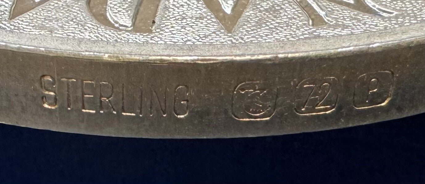 - Excellent condition; medal displays some tiny dings along the edges but otherwise shows minimal signs of visible handling wear. Case displays some very minor corner wear and 2 small thread frays along the inner spine but otherwise shows minimal signs of visible handling wear