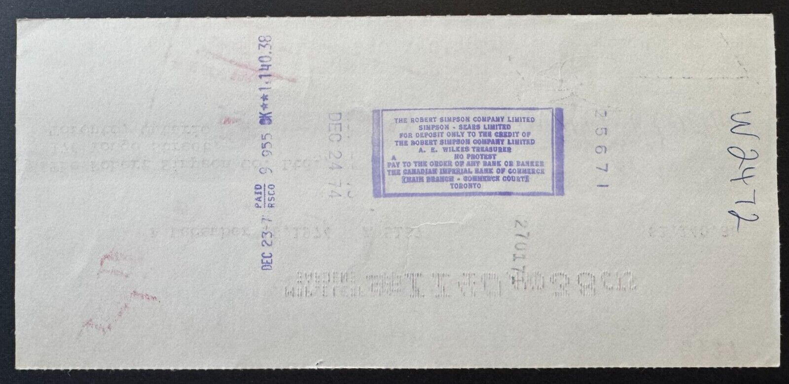 - Cheque made out to The Robert Simpson Co. Ltd.