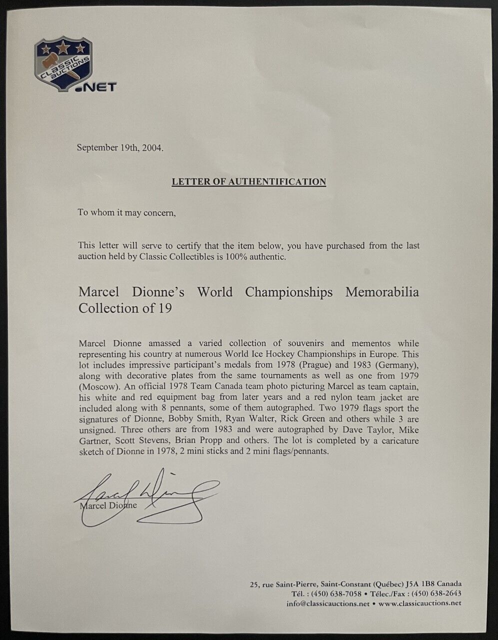 - 1979 World Ice Hockey Championship decorative plate / plaque presented to and signed by Marcel Dionne