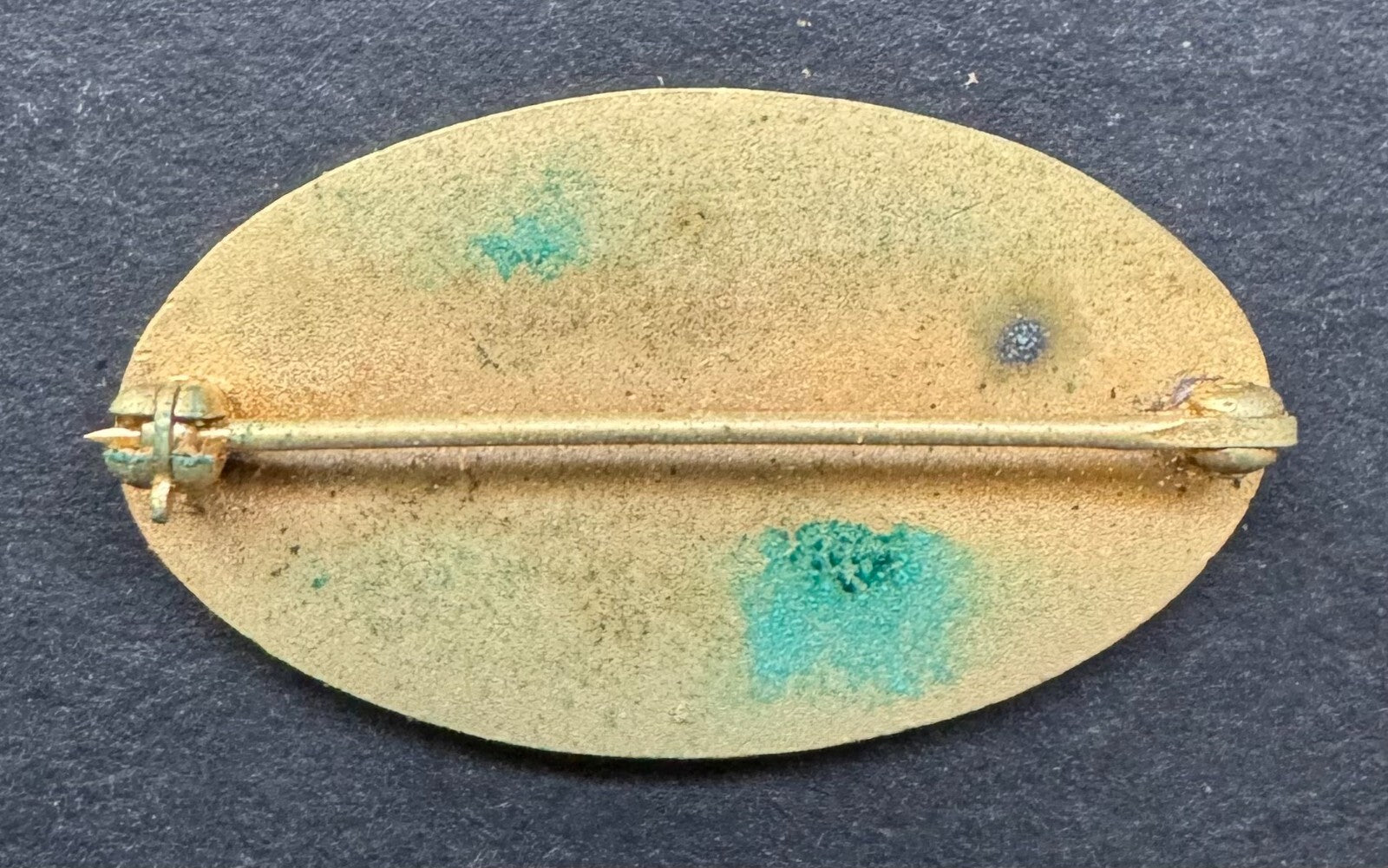 - Excellent condition; front of pin displays little to no signs of visible handling wear. Back of pin displays 3 spots of blue discoloration