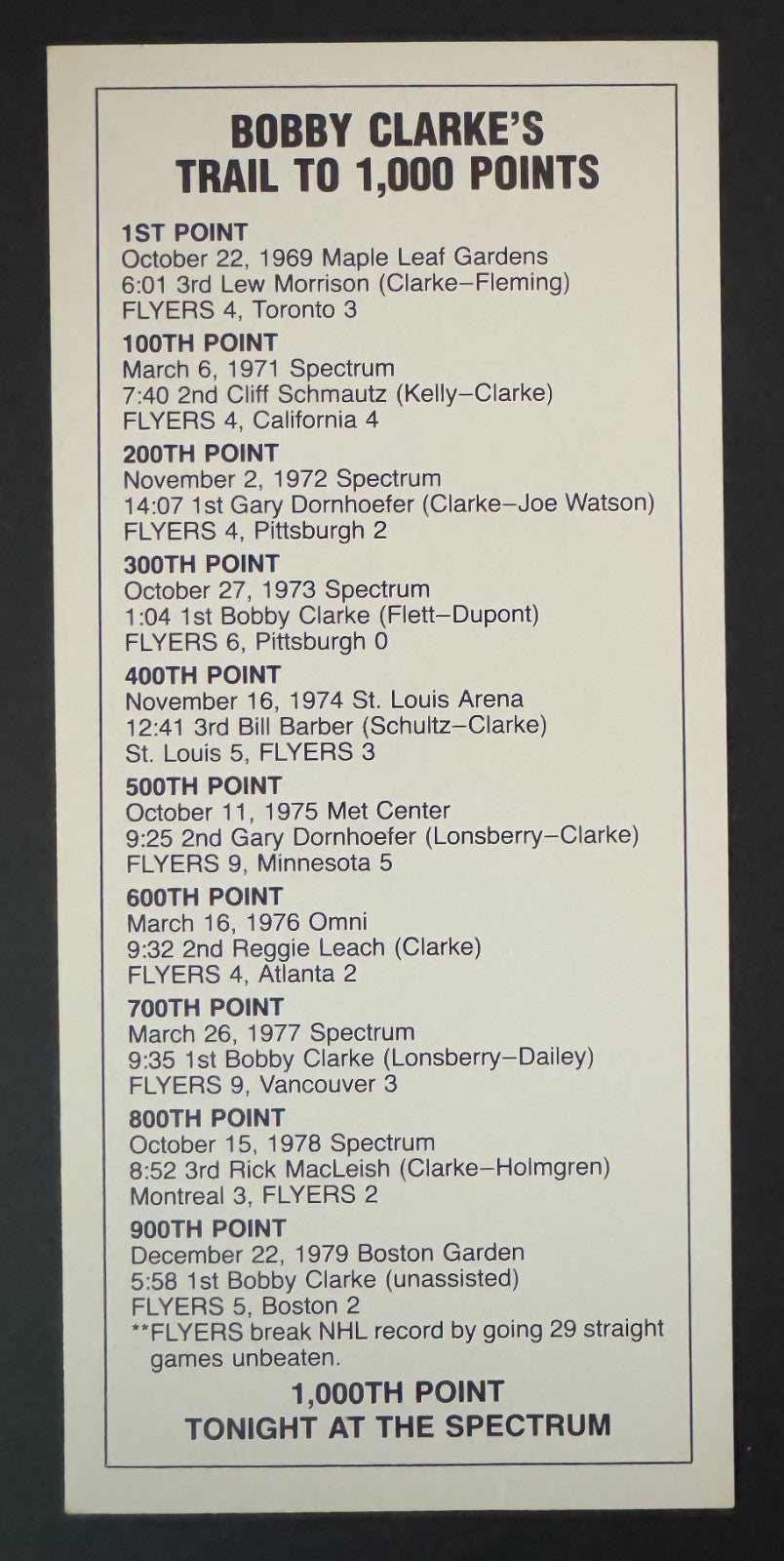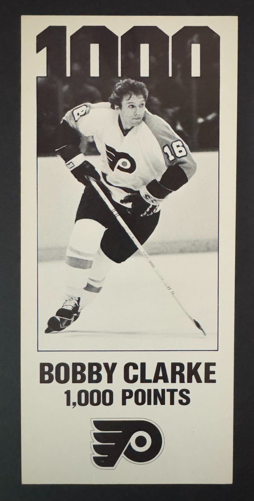 - Card issued by the Flyers to celebrate Clarke's 1000 points