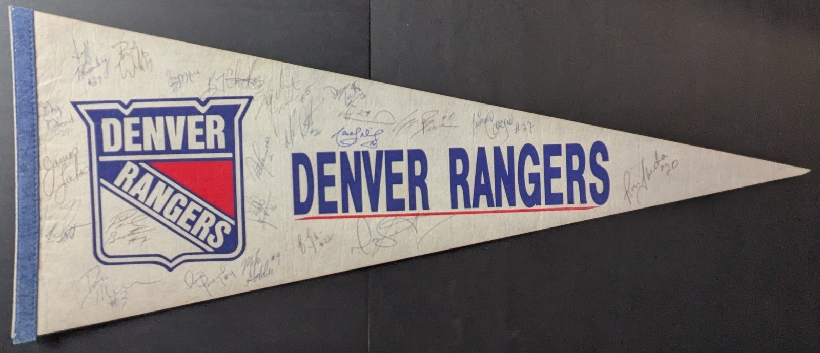 1988-89 IHL Denver Rangers Team Signed x23 Full Size Pennant Hockey Richter