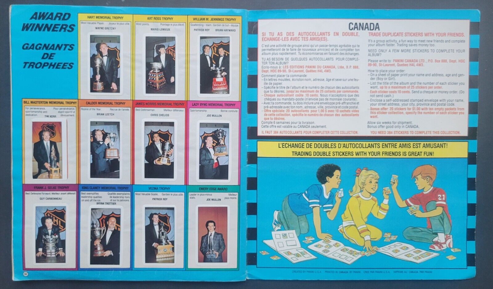 - Vintage NHL album includes stickers of many players, teams, awards and game action shots