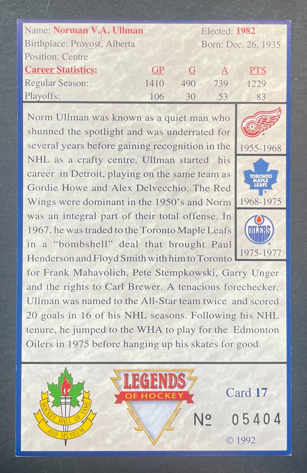 1992 Limited Edition Norm Ullman Signed Legends of Hockey Card NHL Red Wings