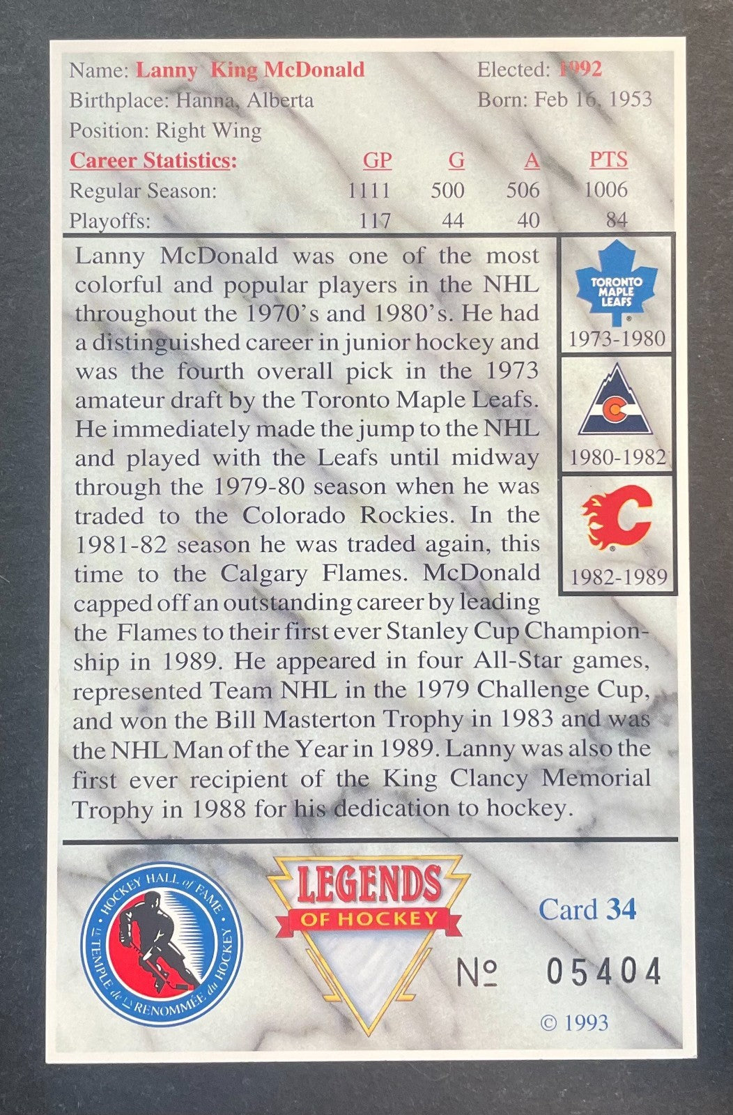 - 1993 Limited Edition Lanny McDonald Signed Legends of Hockey Card
