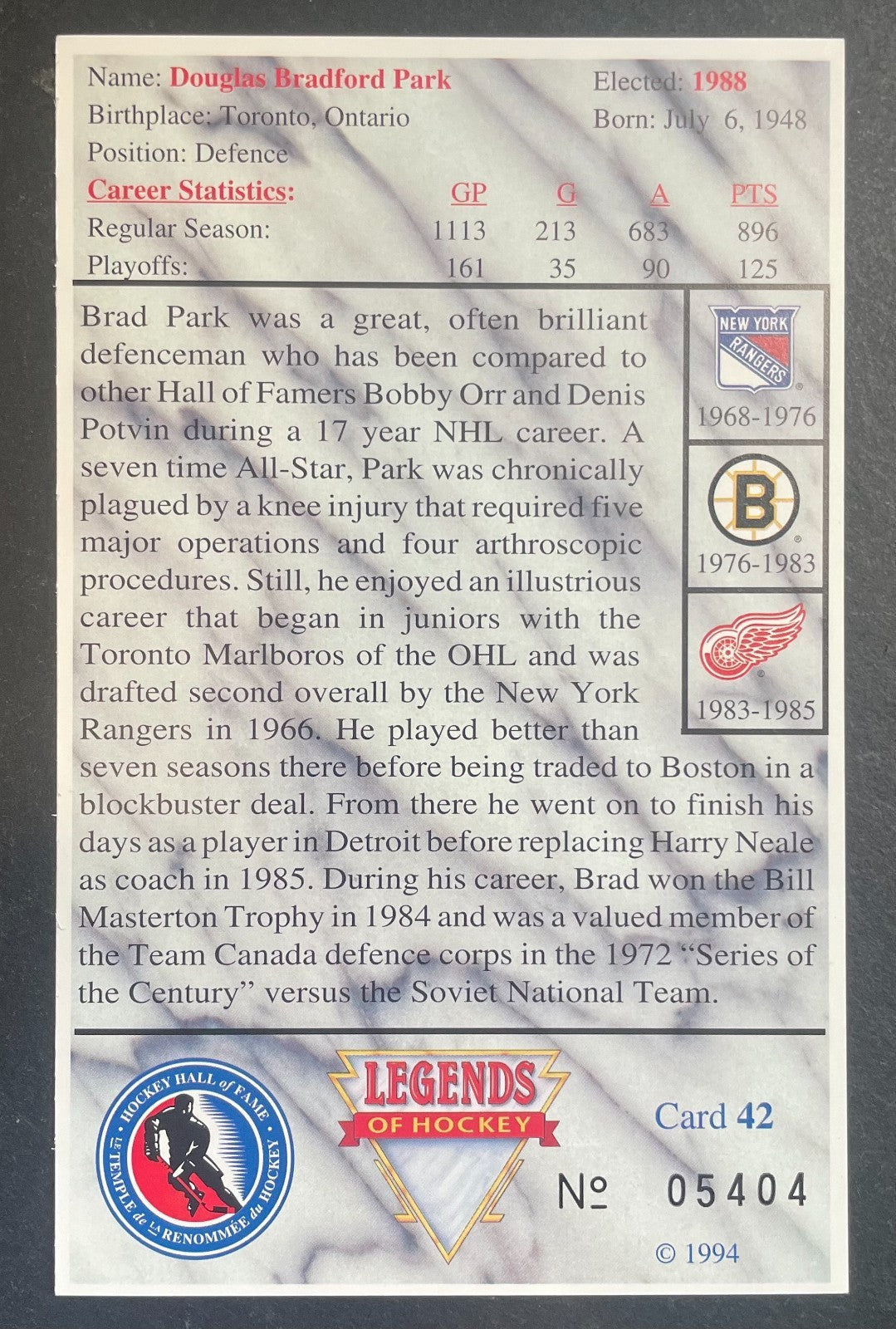 - 1994 Limited Edition Brad Park Signed Legends of Hockey Card NHL Rangers