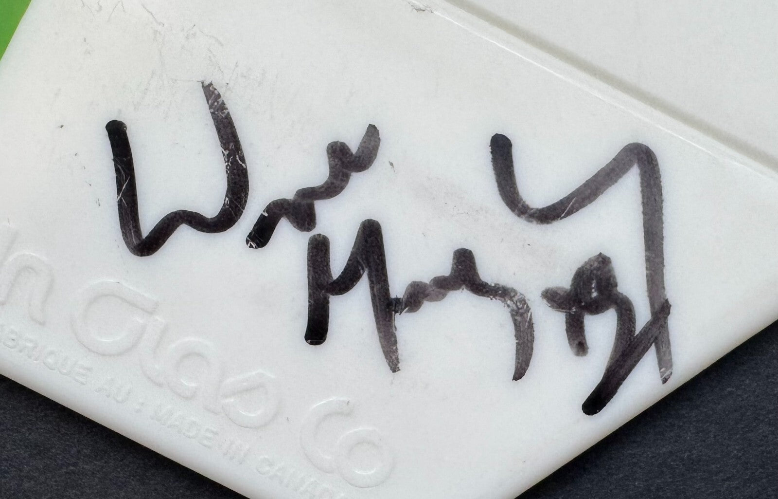 - Excellent condition; stick displays some minor nicks and scratches. Some black ink on reverse side of upper shaft. Autographs present well with no smudging, bleeding or fading but some very minor transfer loss visible on the autographs