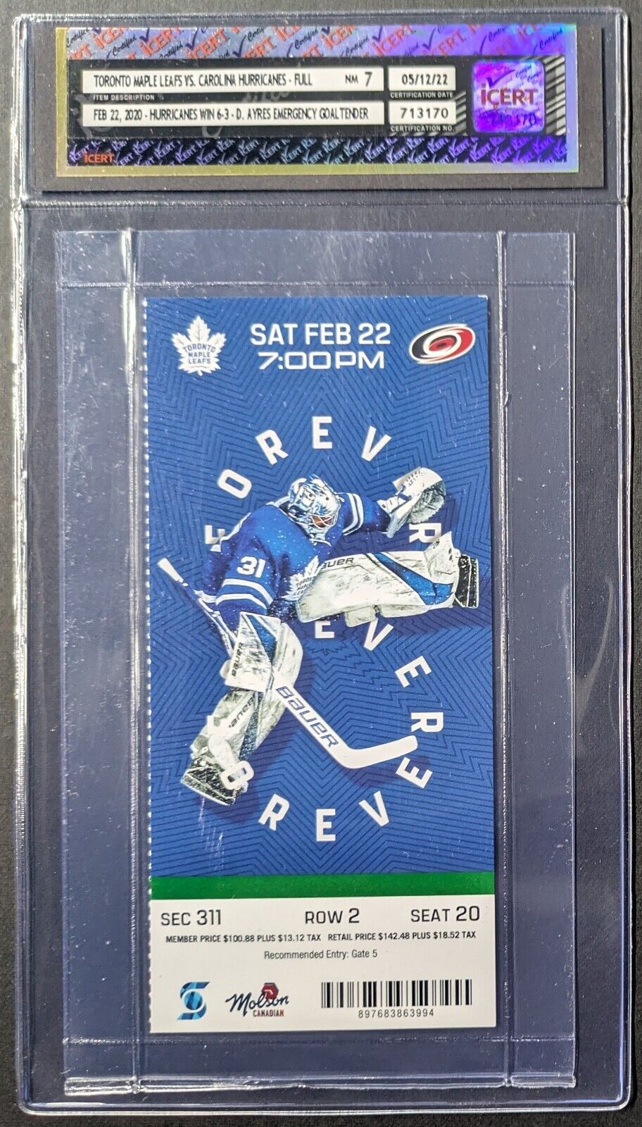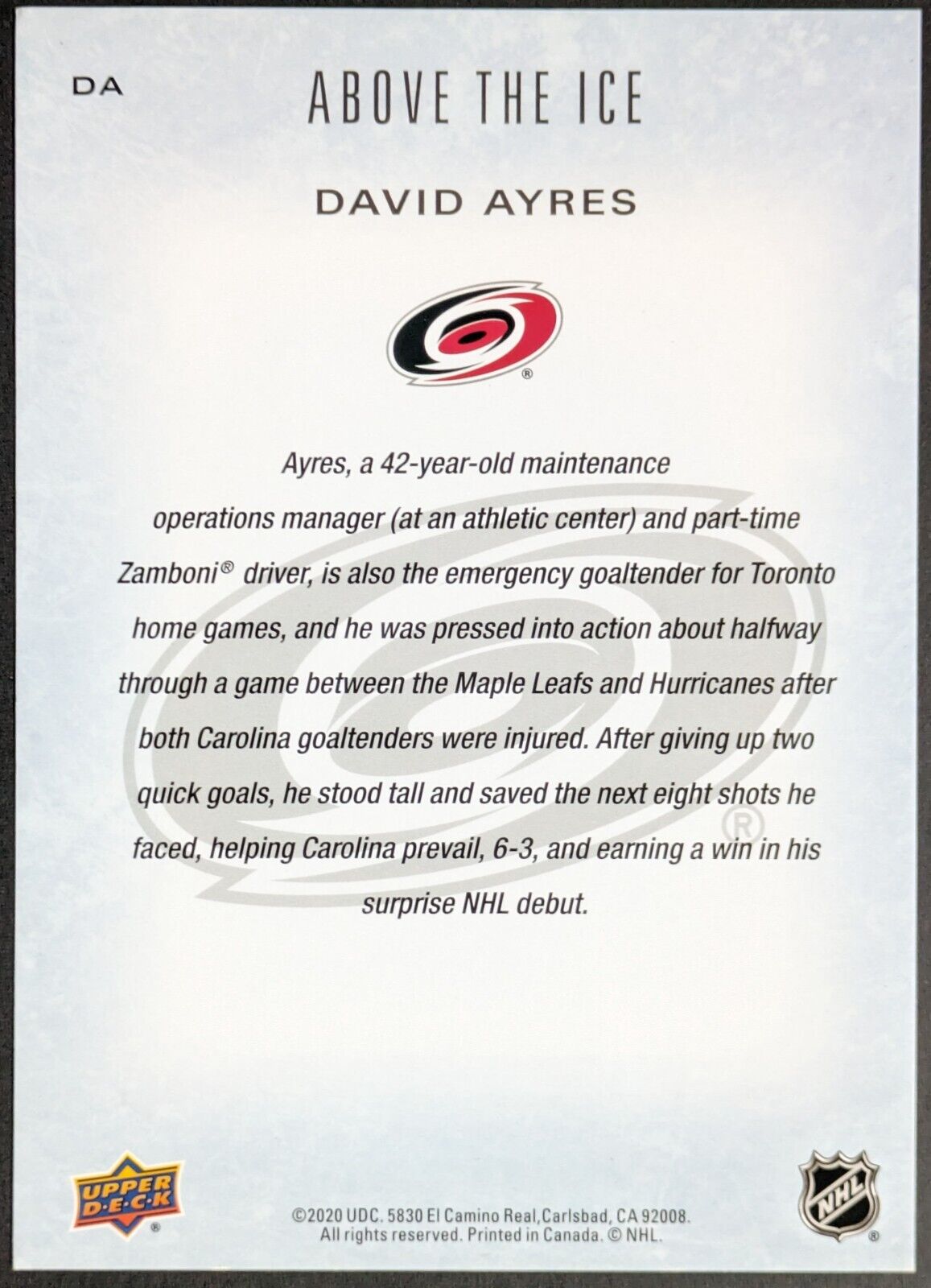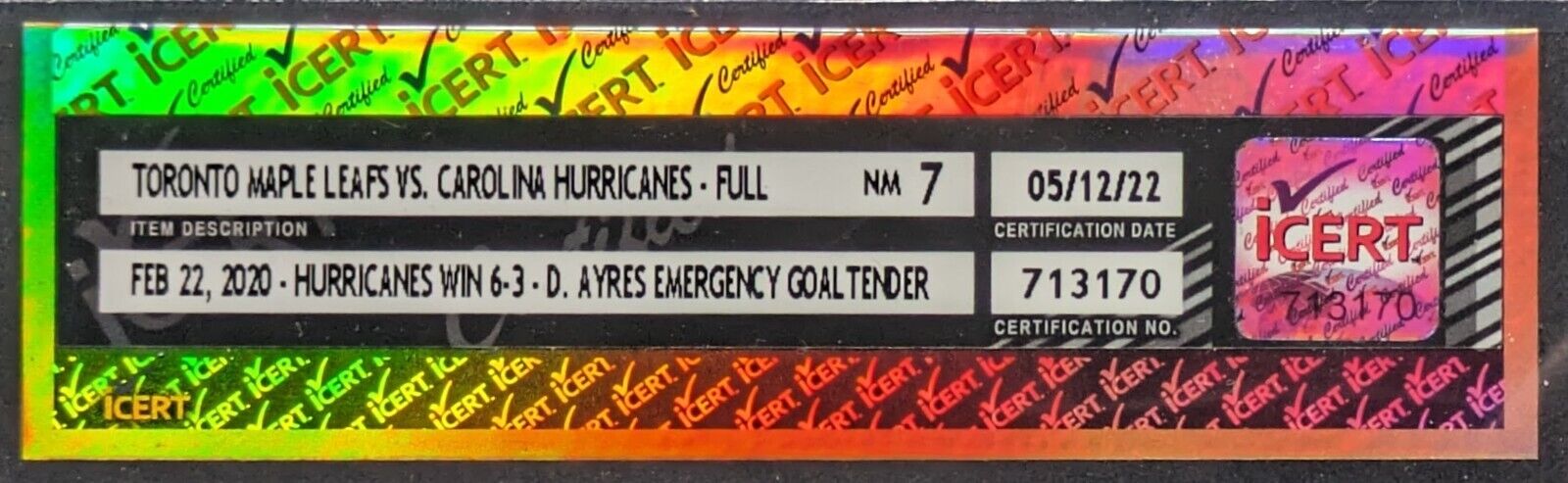 - David Ayres Emergency Goaltender game where the Carolina Hurricanes defeated the Toronto Maple Leafs on February 22nd, 2020