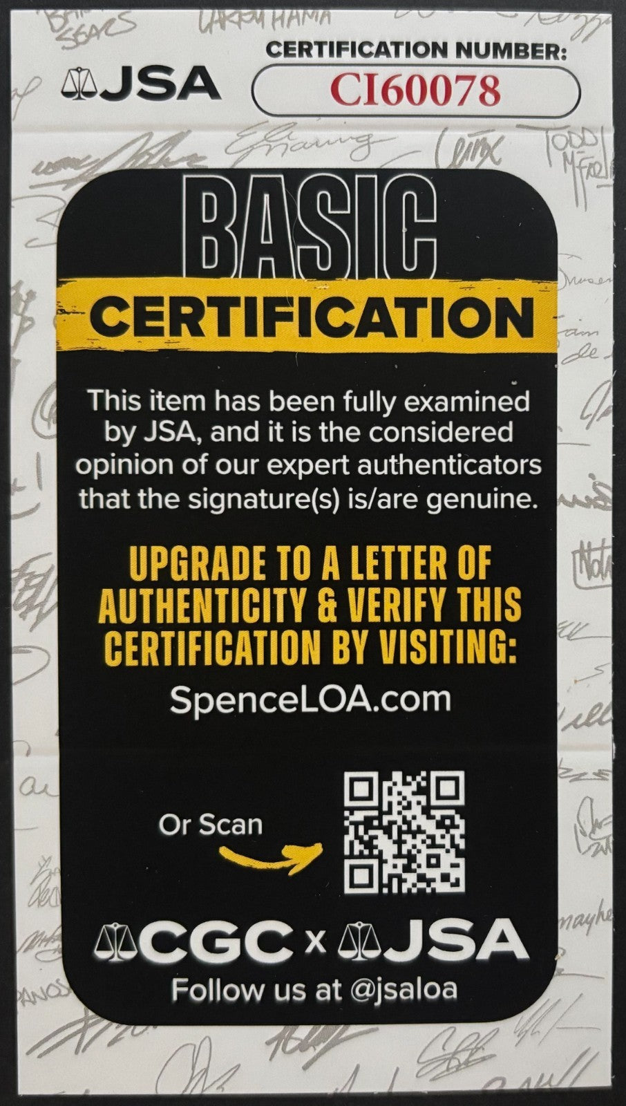 - Very good condition; minor creasing and spotting, light handling wear, autographs present well with no smudging or fading. Autographs bleed slightly onto the reverse but there is no content on this page
