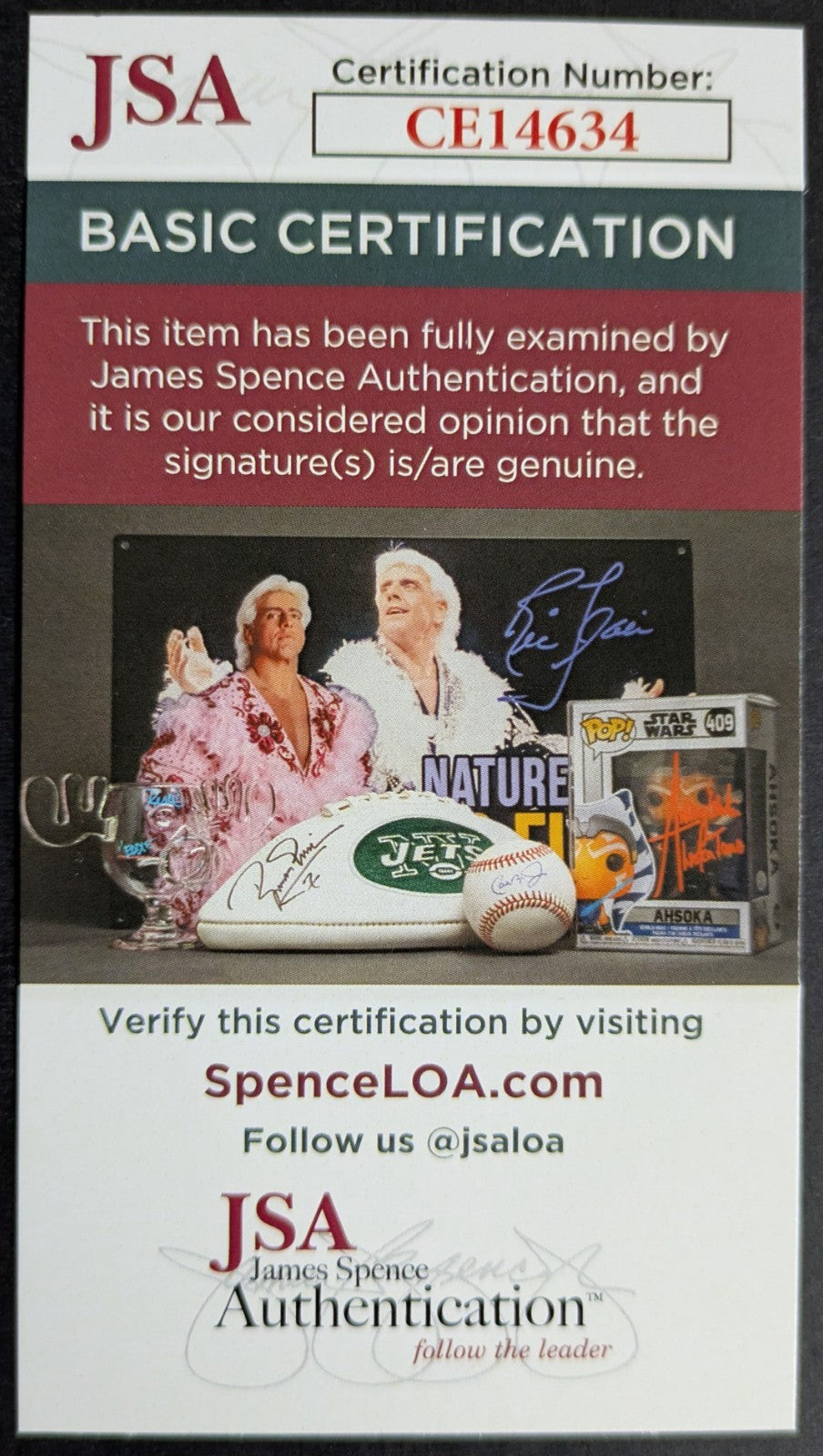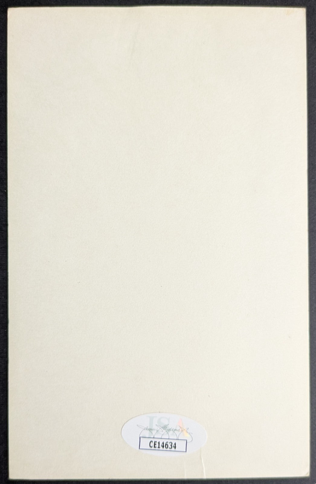 - Excellent condition; autograph presents well with no fading or smudging, unused and unposted, some corner and edge wear