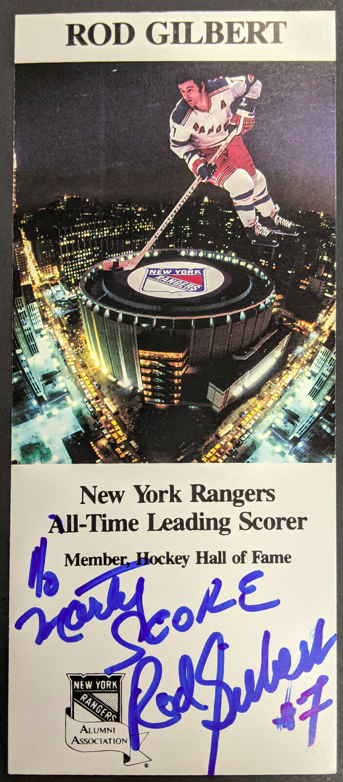 - Rod Gilbert Autographed Card NHL New York Rangers Alumni Association