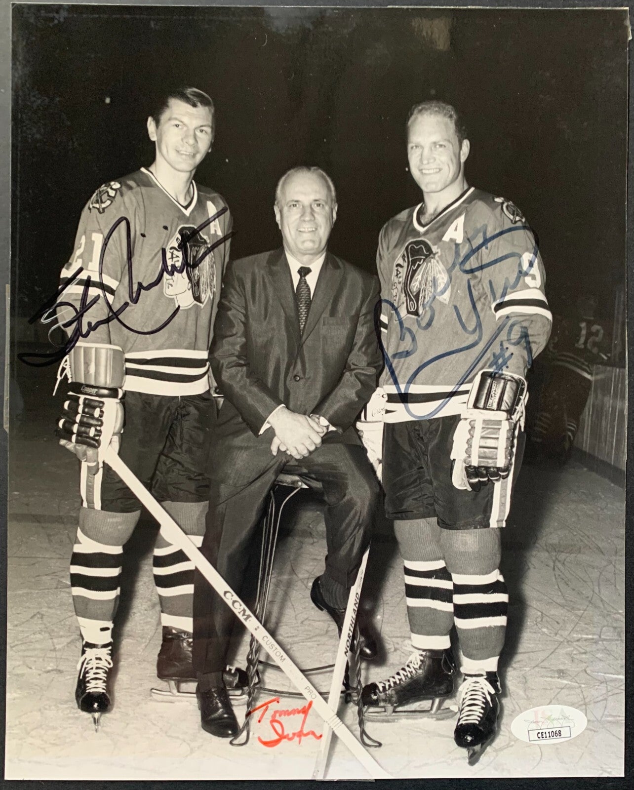 - Stan Mikita + Bobby Hull + Tommy Ivan Signed Autographed Photo JSA