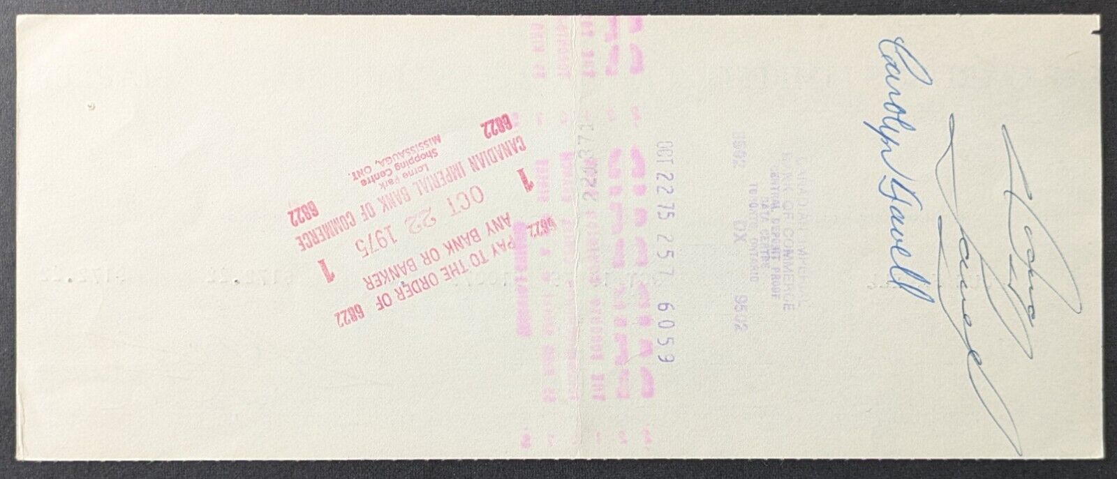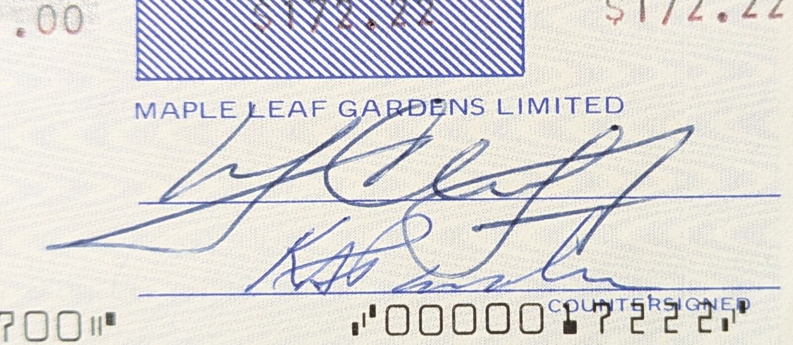 • Endorsed on back by Favell and signed by Leafs CFO Donald Crump