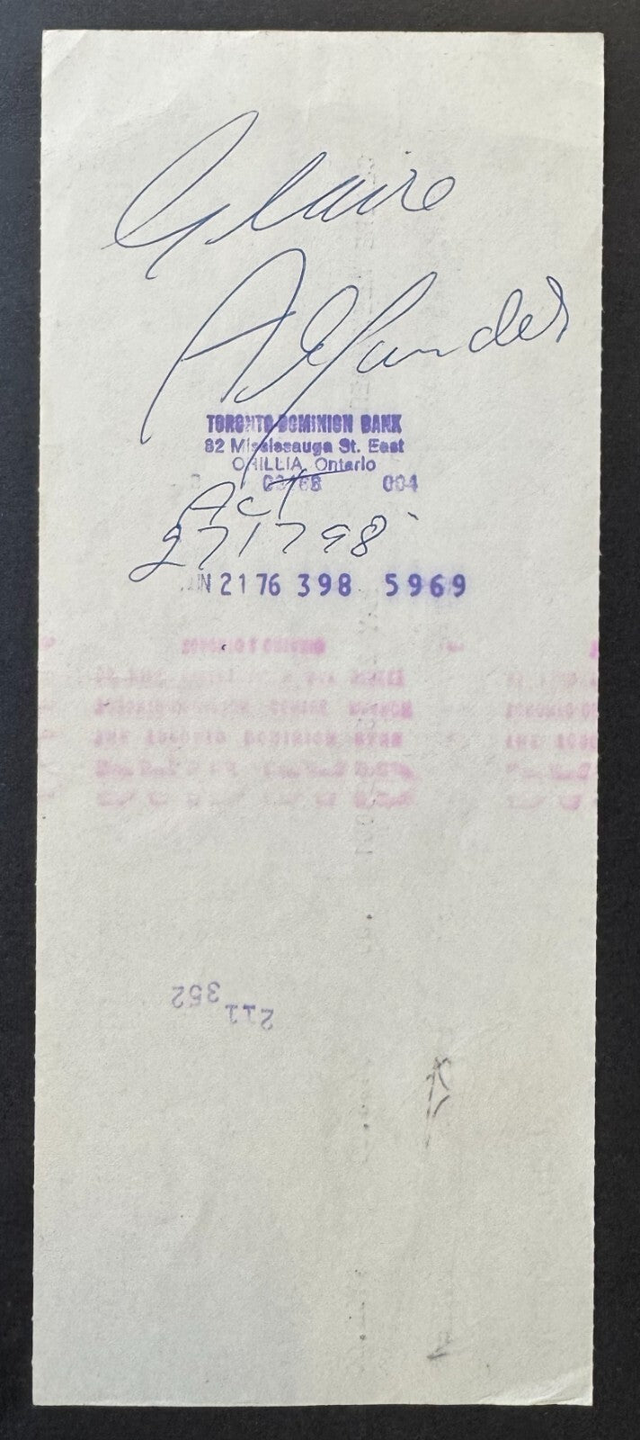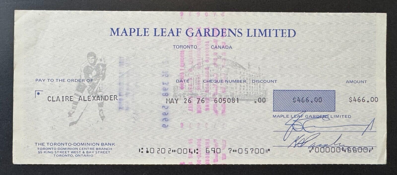 - Toronto Maple Leafs Claire Alexander Endorsed Cheque