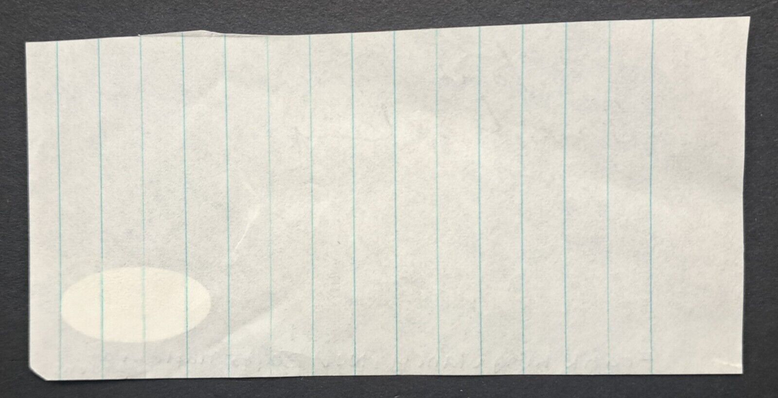 - Excellent condition. Autograph and personalization show little to no bleeding or smudging. Signature has been cut from a note page resulting in uneven edges.