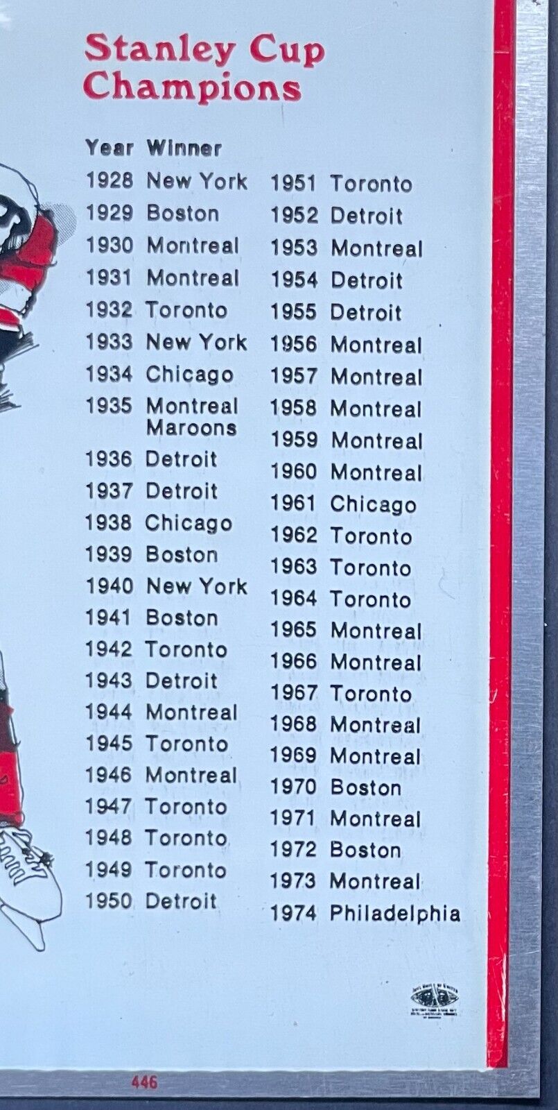- Can lists all Stanley Cup Winners from 1928-1974