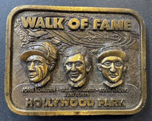 - Hollywood Race Track Walk of Fame inductees belt buckle featuring horse racing jockeys Arcaro, Longden and Shoemaker