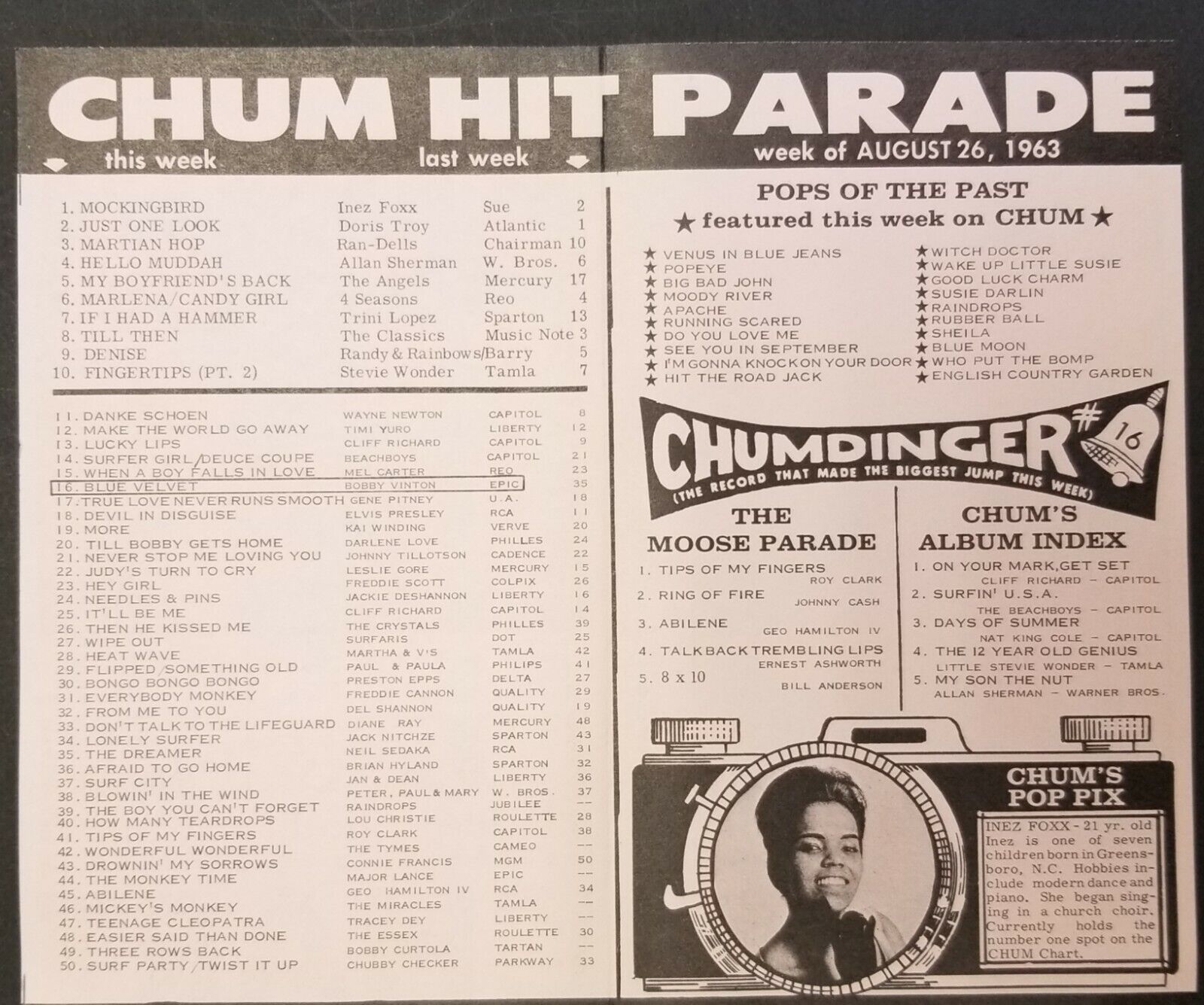 - The Week Of August 26 1963 featuring CHUM Champs...CHUM Chicks... on the back cover
