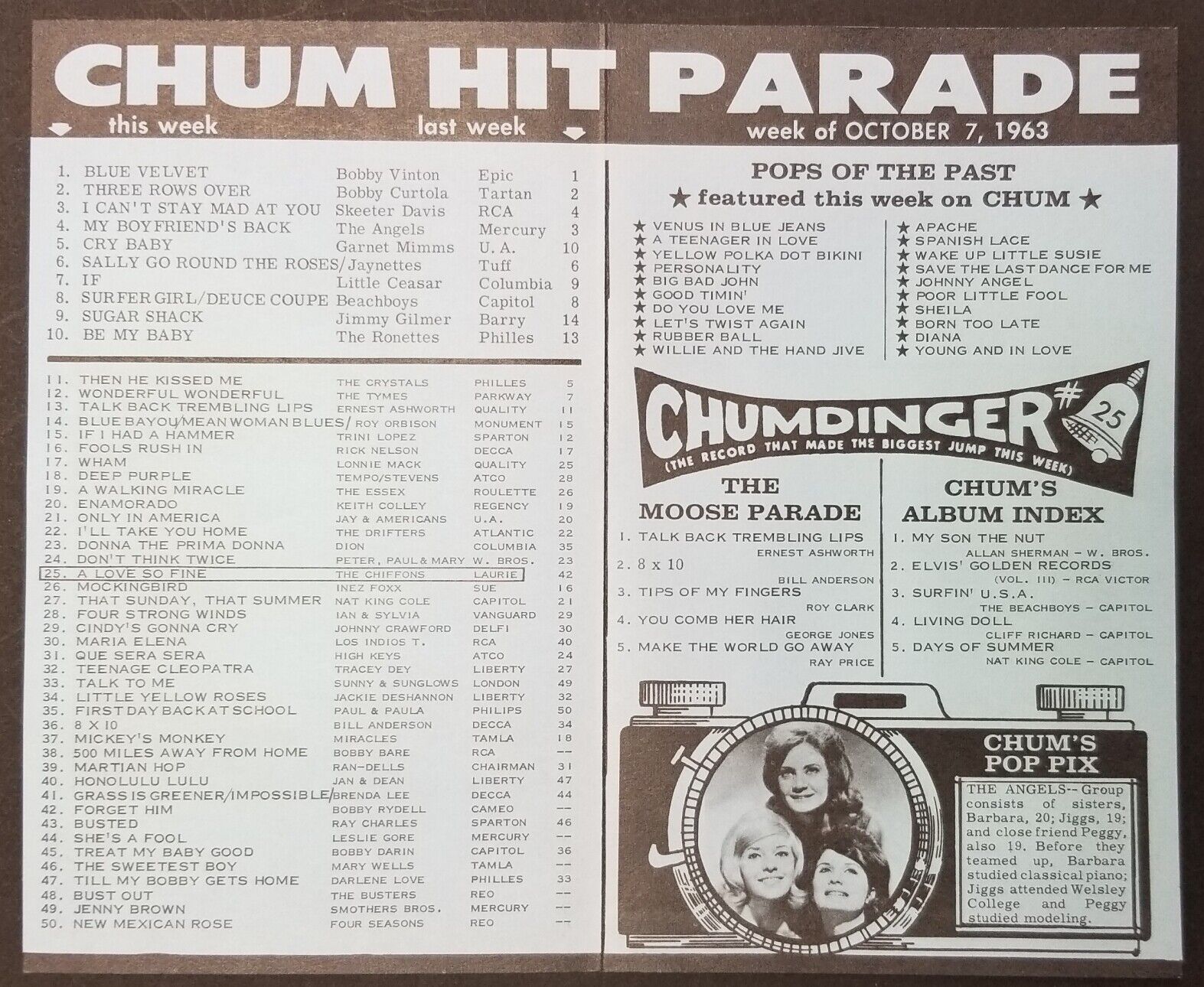 - The Week Of October 7, 1963 featuring CHUM's PopsUlarity Contest on the back cover
