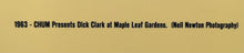 - 1963 dry-mounted and plaqued photo of Dick Clark performing at Maple Leaf Gardens, originally hung up at the CHUM Radio Yonge St. office in Toronto