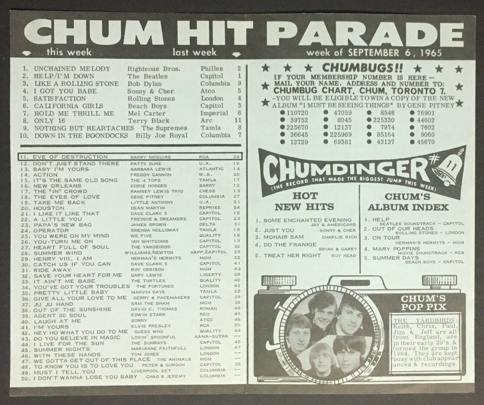 • 1965 week of September 6th, Chum Radio Survey Chart