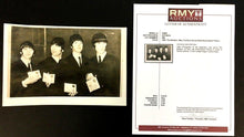 - 1965 historic photograph of the legendary rock group the Beatles as they visit Buckingham Palace in order to receive awards from the queen. The image show John Lennon, Paul McCartney, Ringo Starr and George Harrison