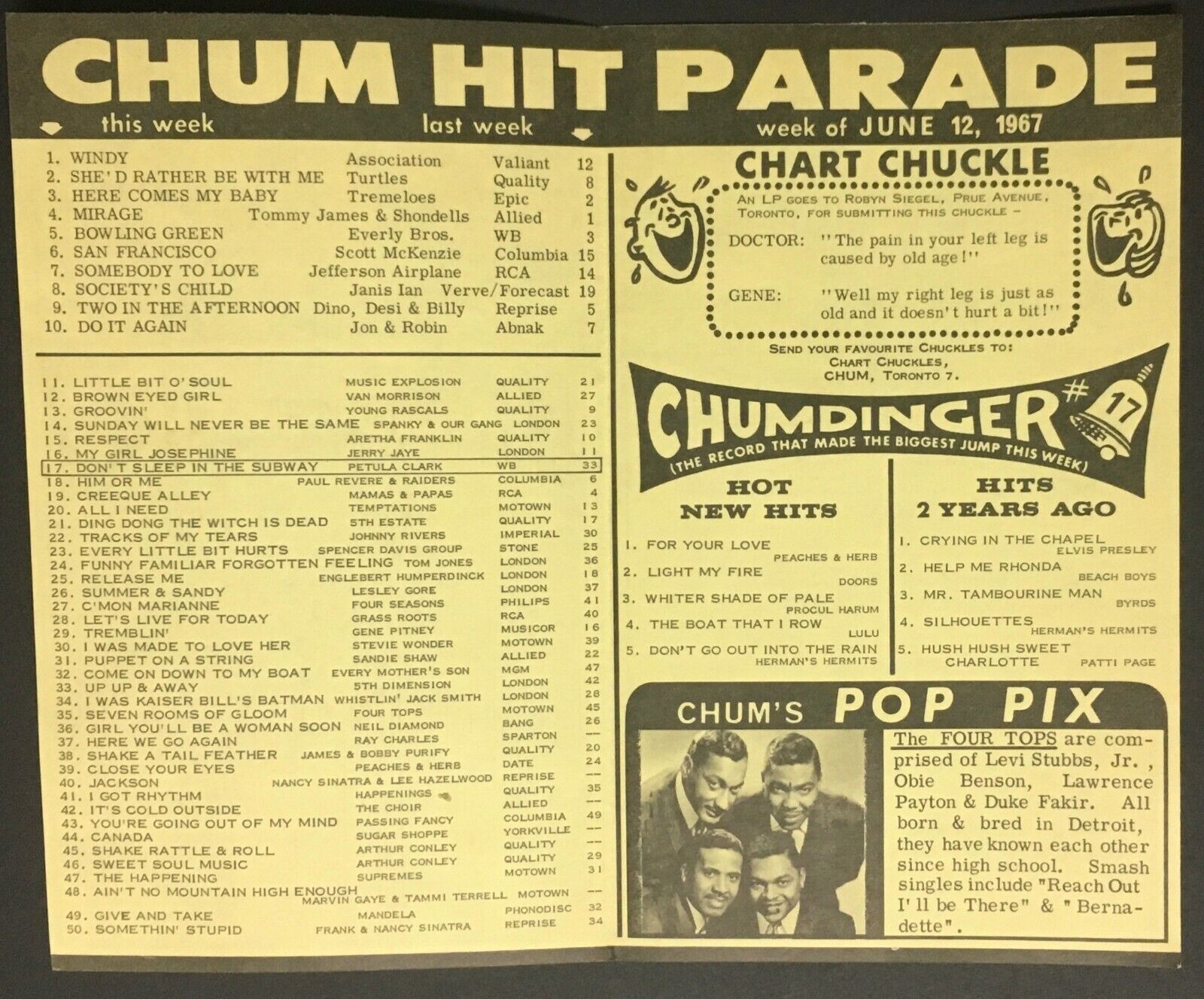 - 1967 week of June 12th, Chum Radio Survey Chart