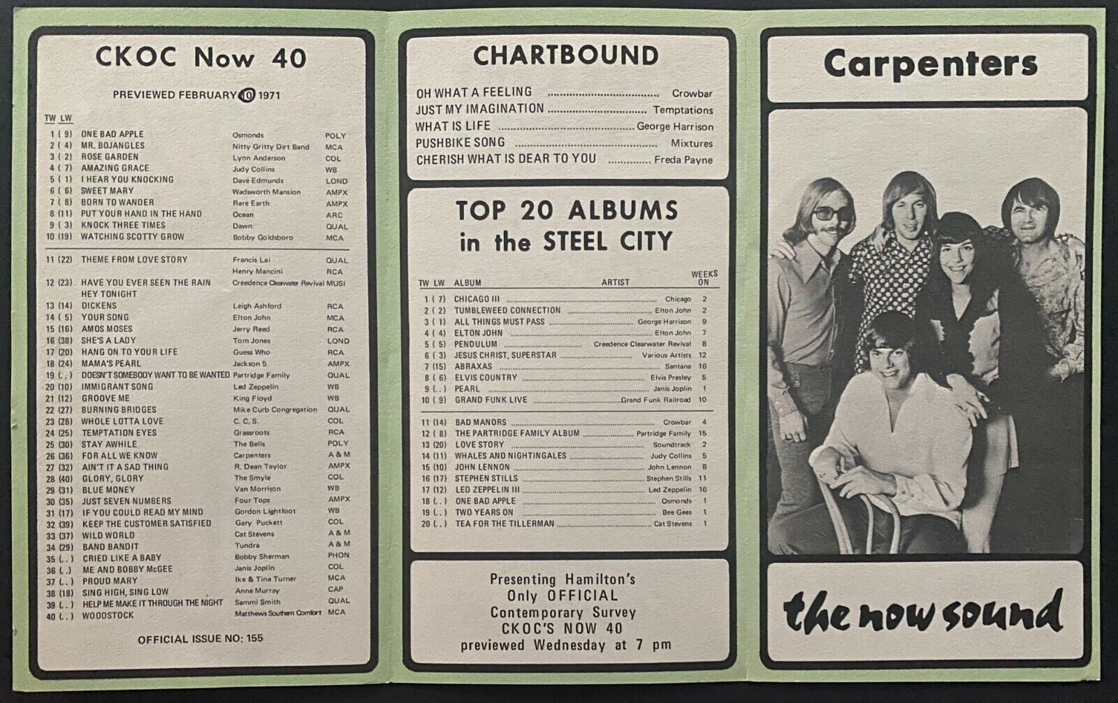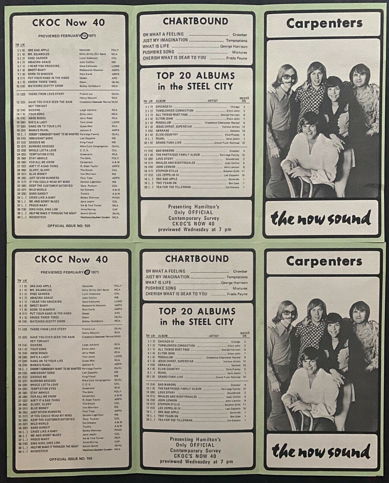• CKOC Radio Music Regular Chart w/ Extra Misprint Chart For Week of February 10, 1971