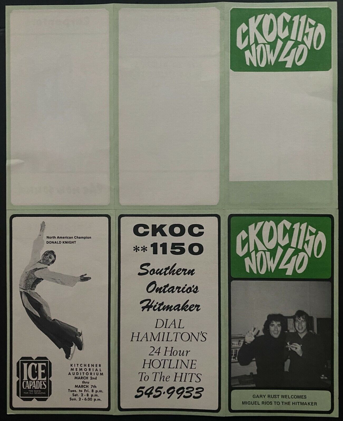 1971 CKOC Radio Music Regular Chart w/ Extra Misprint Chart With Blank Side