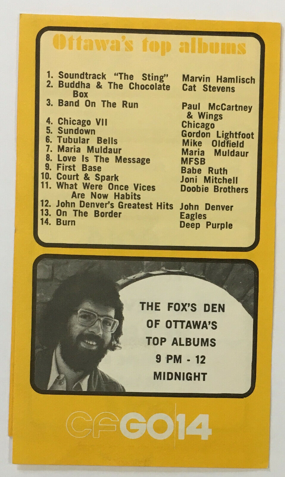 • May 27, 1974 CFGO14 Greater Ottawa Rock radio station music survey chart