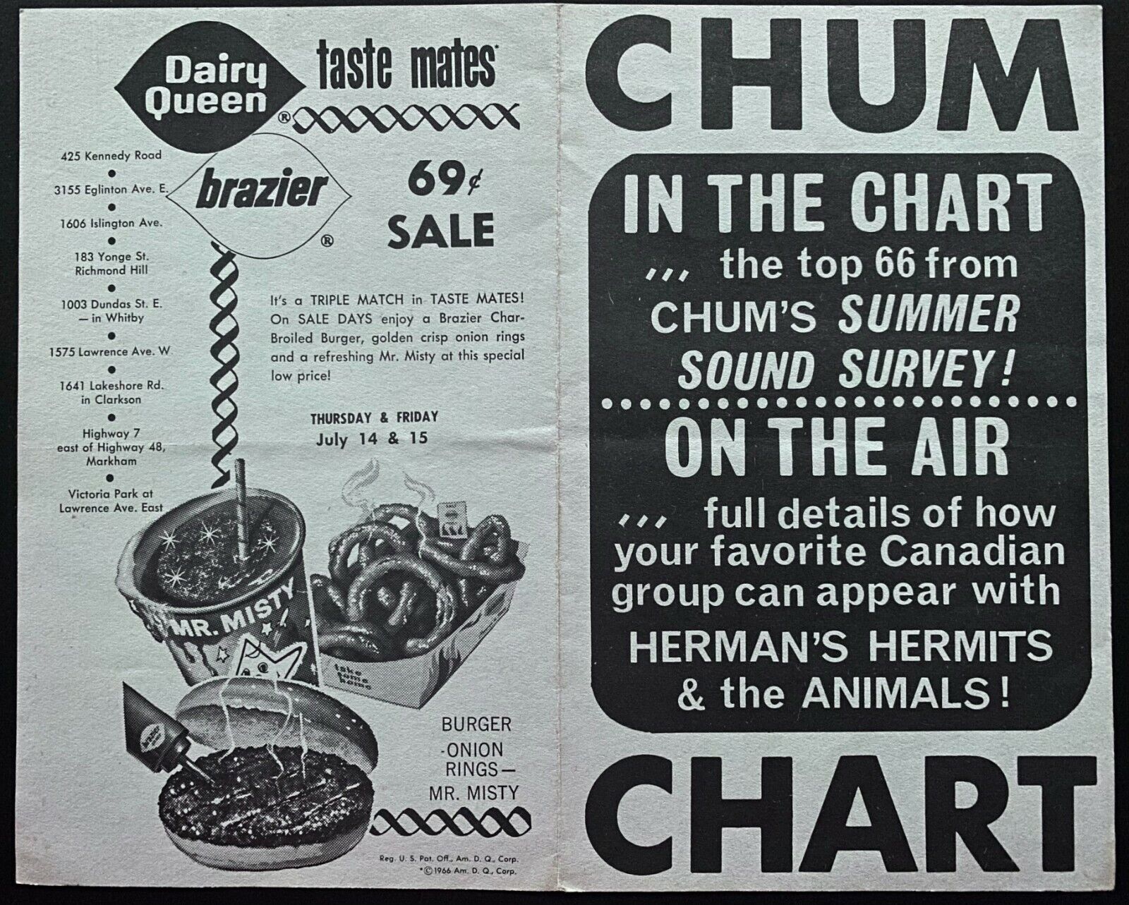 Vintage Chum Radio Music Chart Top 66 Rock Songs Sound Survey July 11 1966