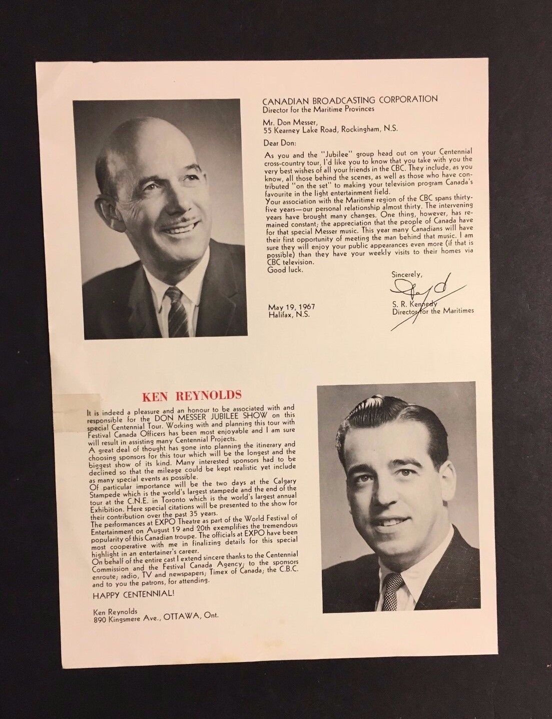 • 1967 Jubilee Tour Program Page Autographed Don Messer Signed Canadian Musician