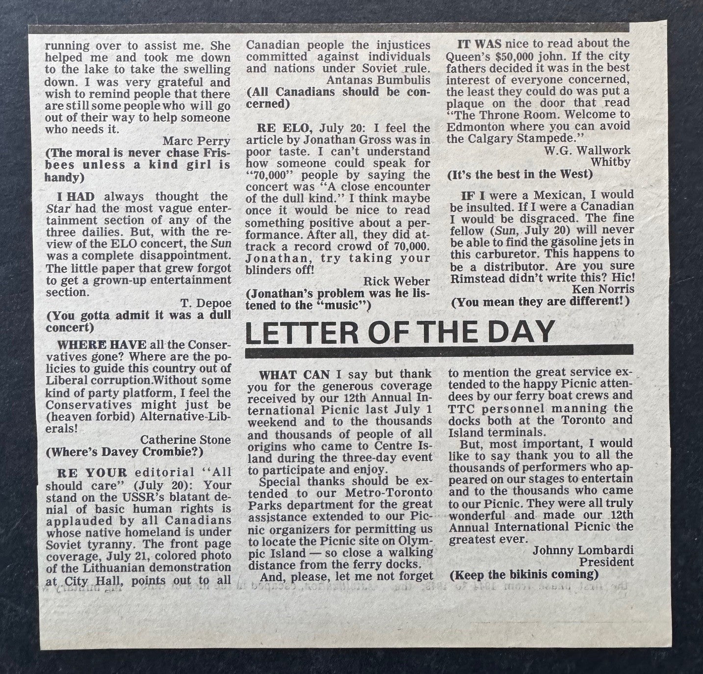 - Program for July 19, 1978 concert at Exhibition Stadium in Toronto. Famous tour with the spaceship stage