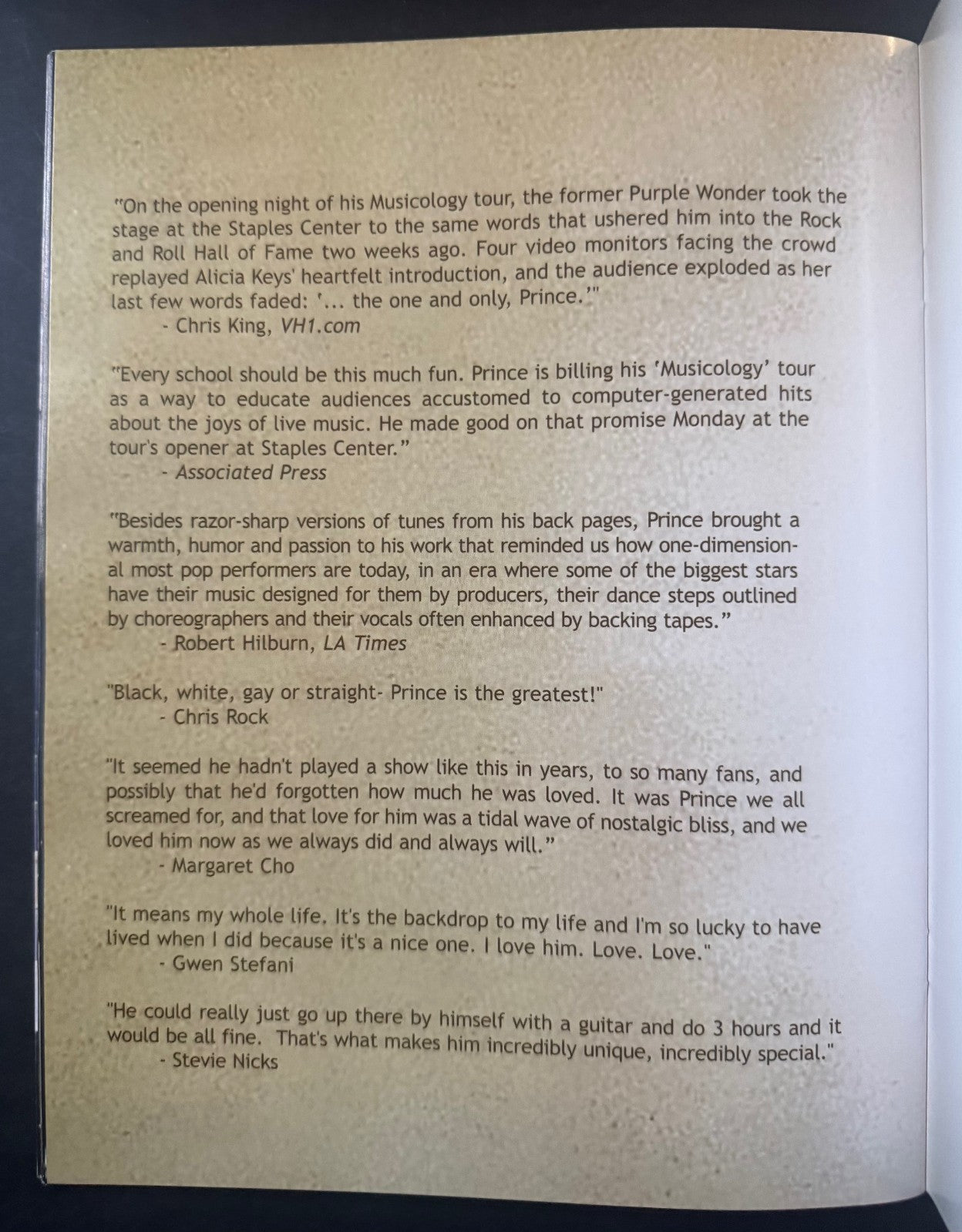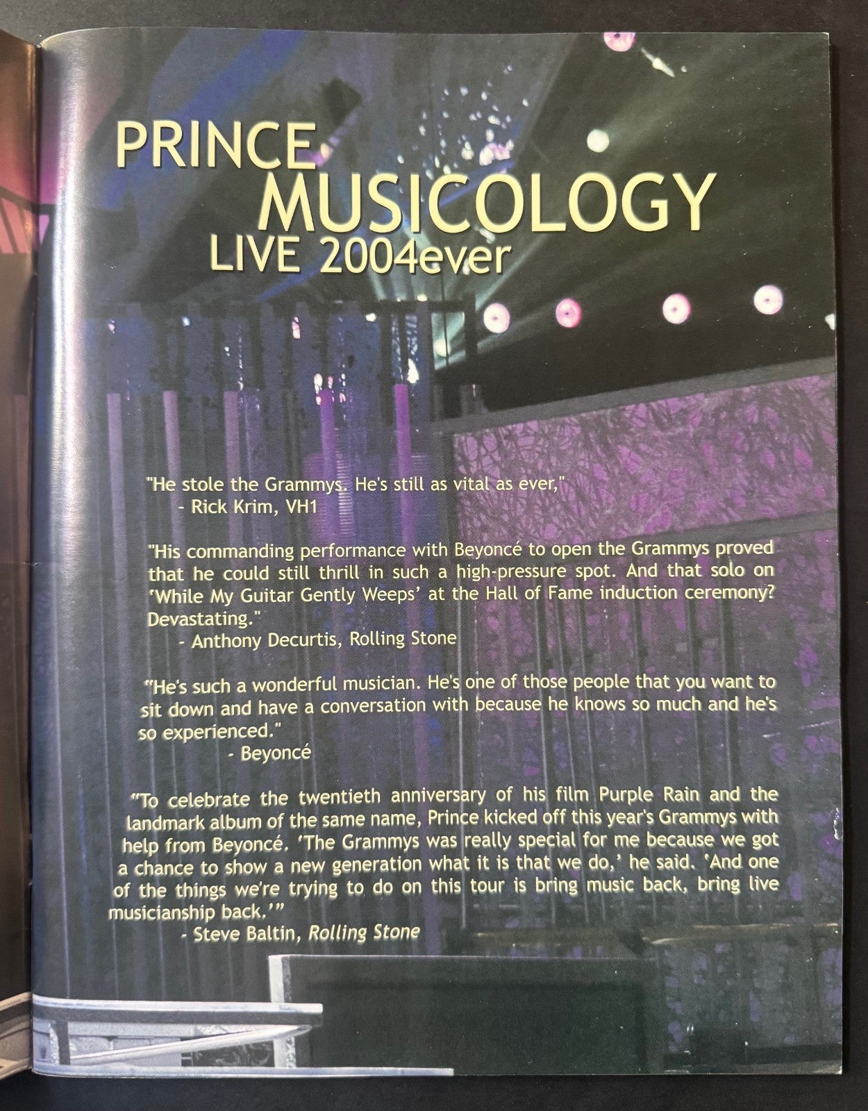 2004 Prince Musicology Concert Tour Program American Singer Songwriter Music