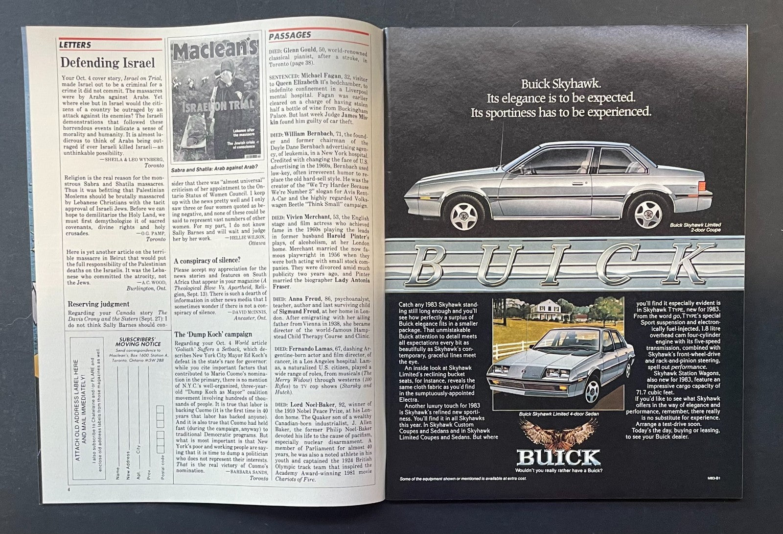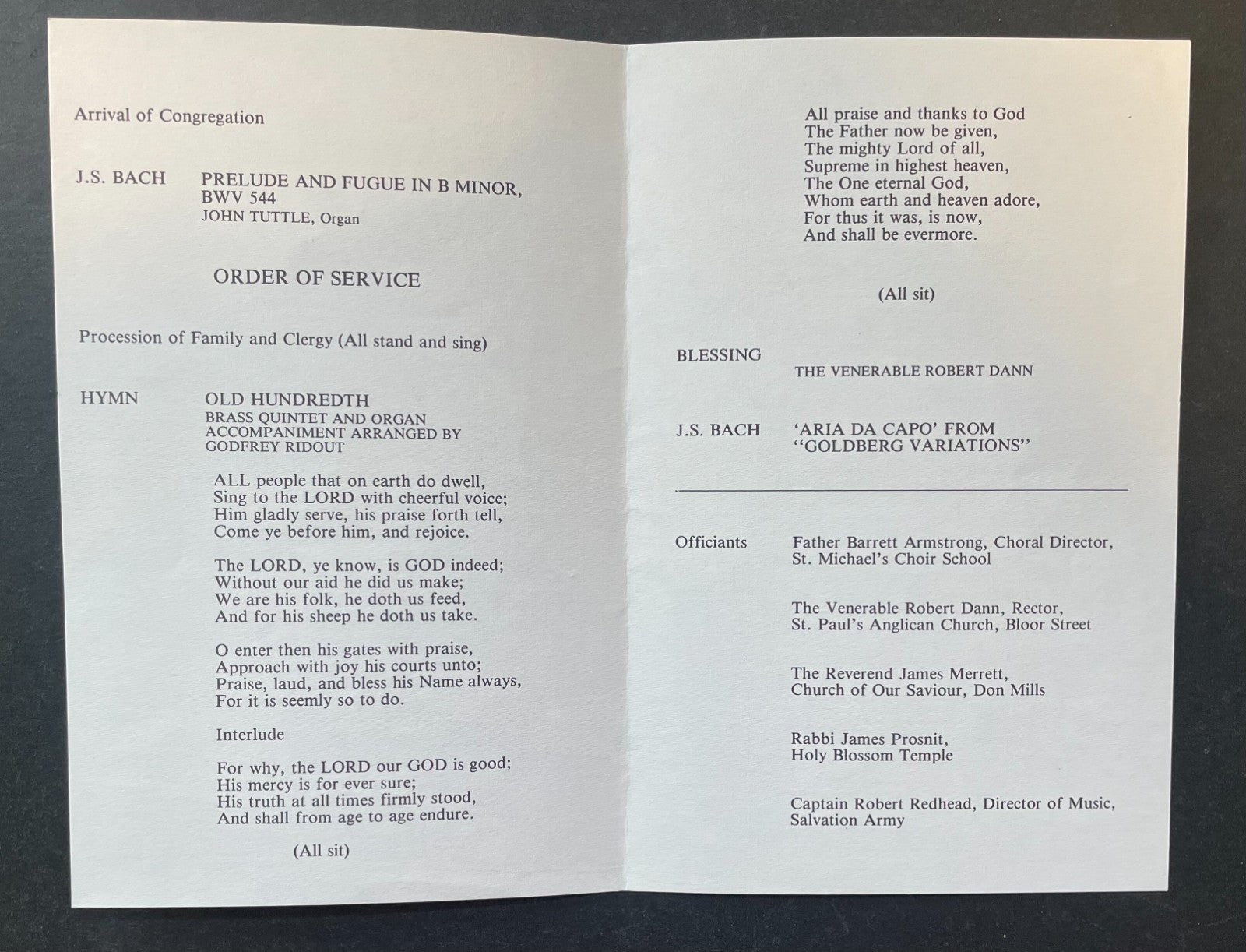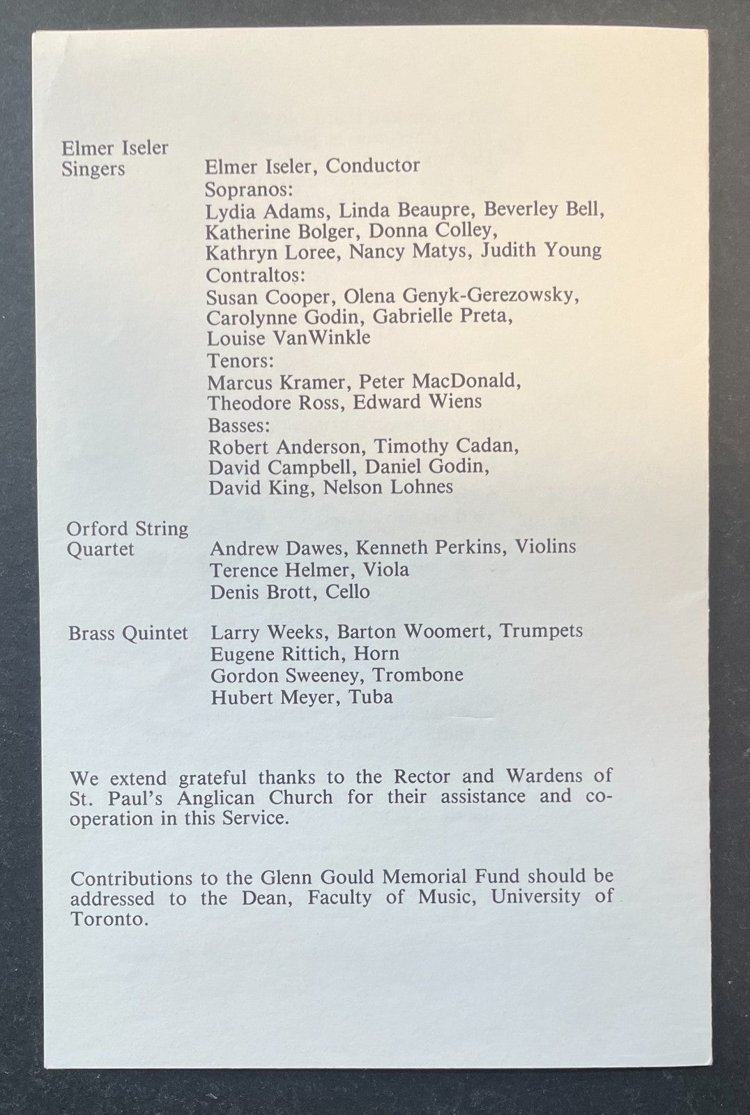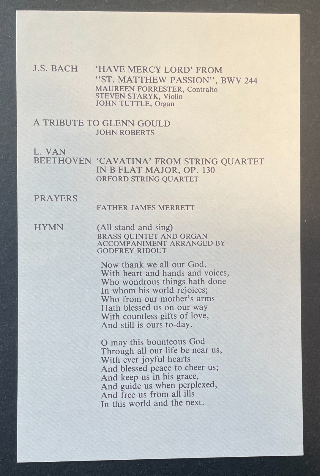 - Glenn Gould Oct. 15, 1982 funeral program and Maclean's Magazine issue celebrating his life