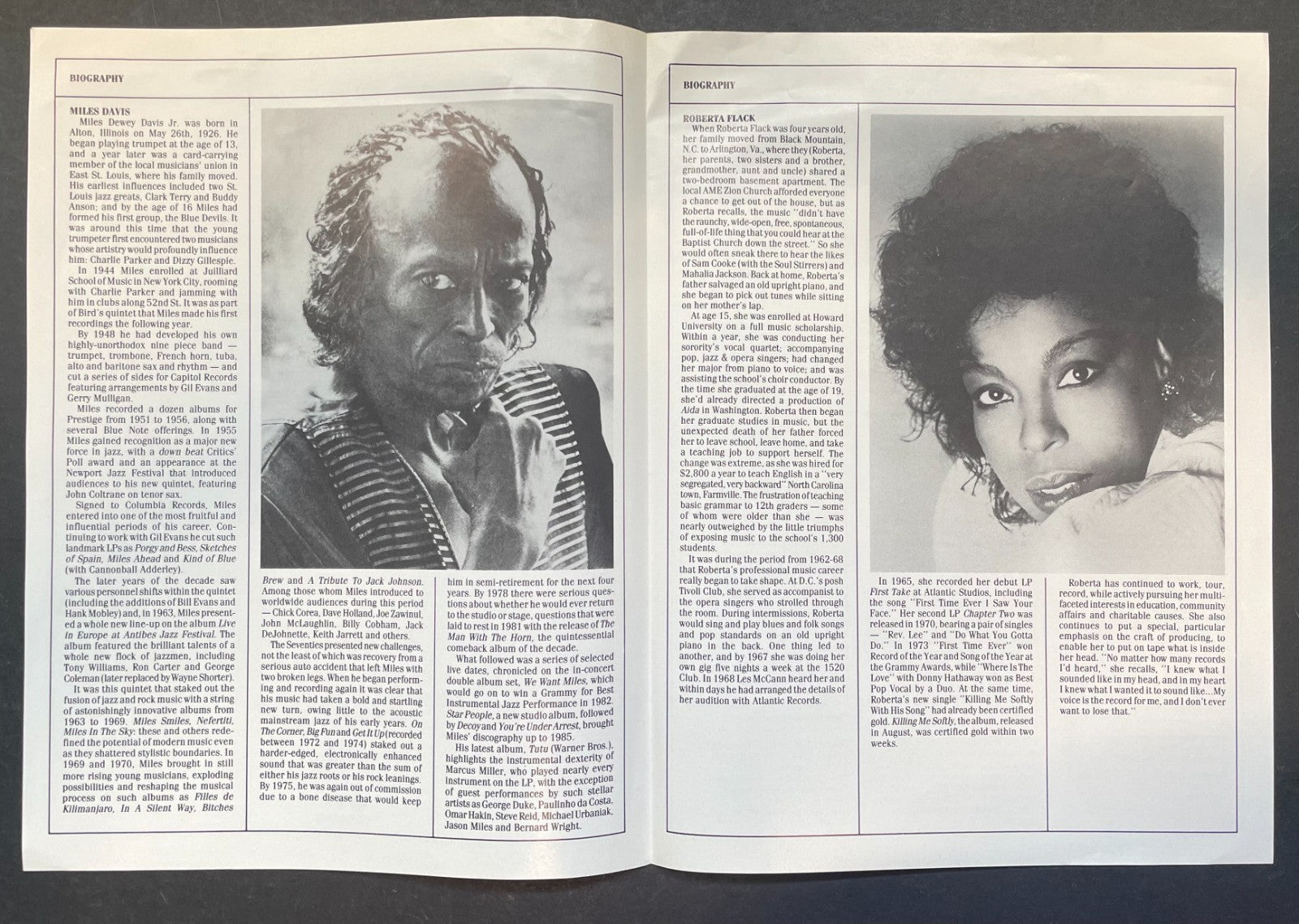 - Miles Davis + Roberta Flack Toronto Jazz Festival Gala Peview Performance Program
