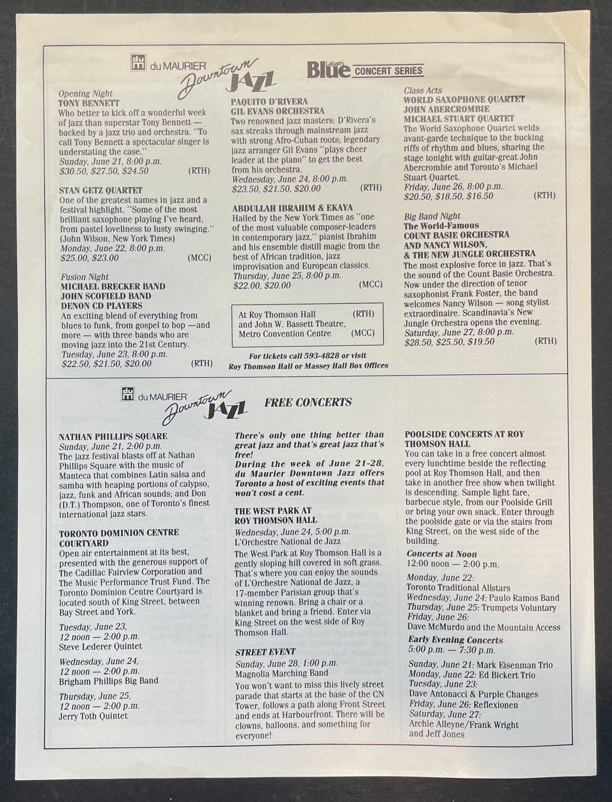 - Program for June 17, 1987 6:30 & 9:30pm shows at Roy Thomson Hall
