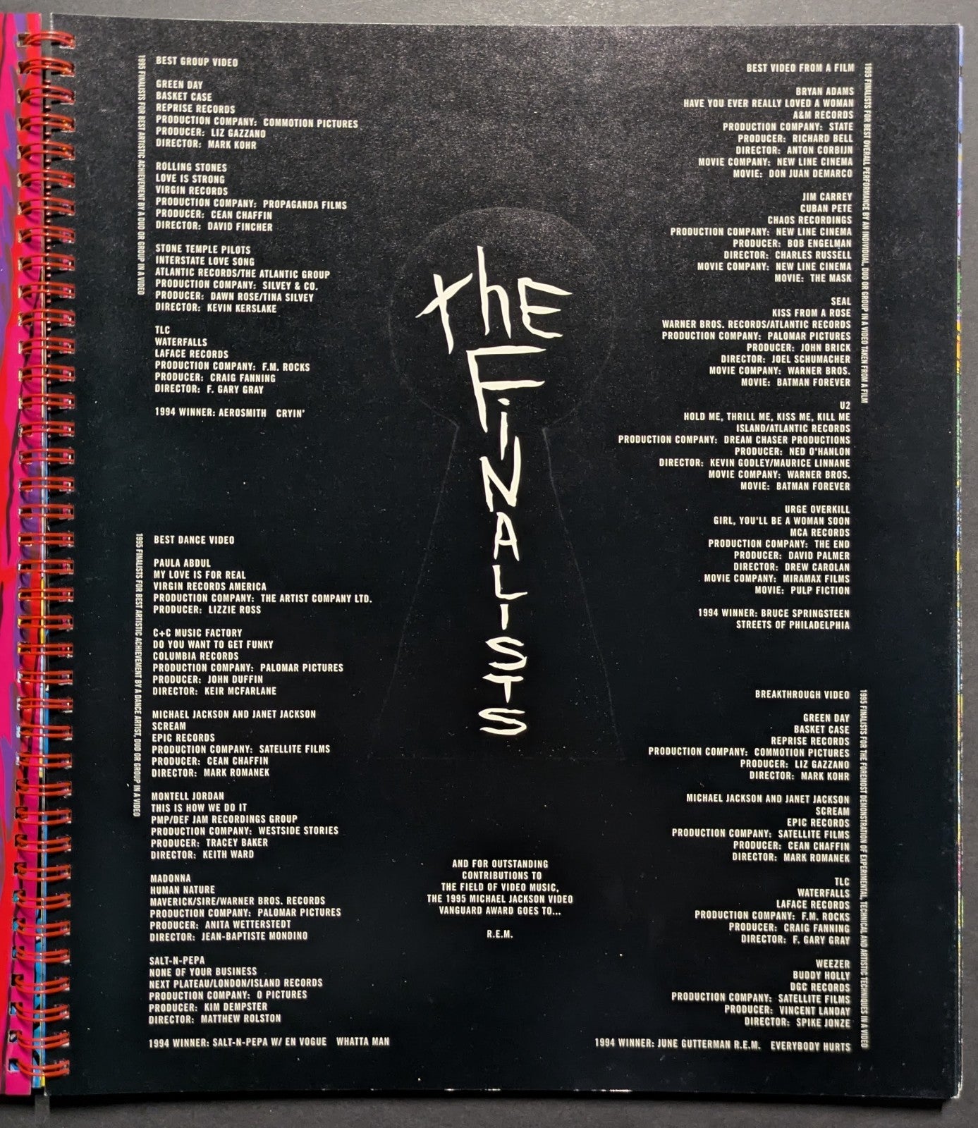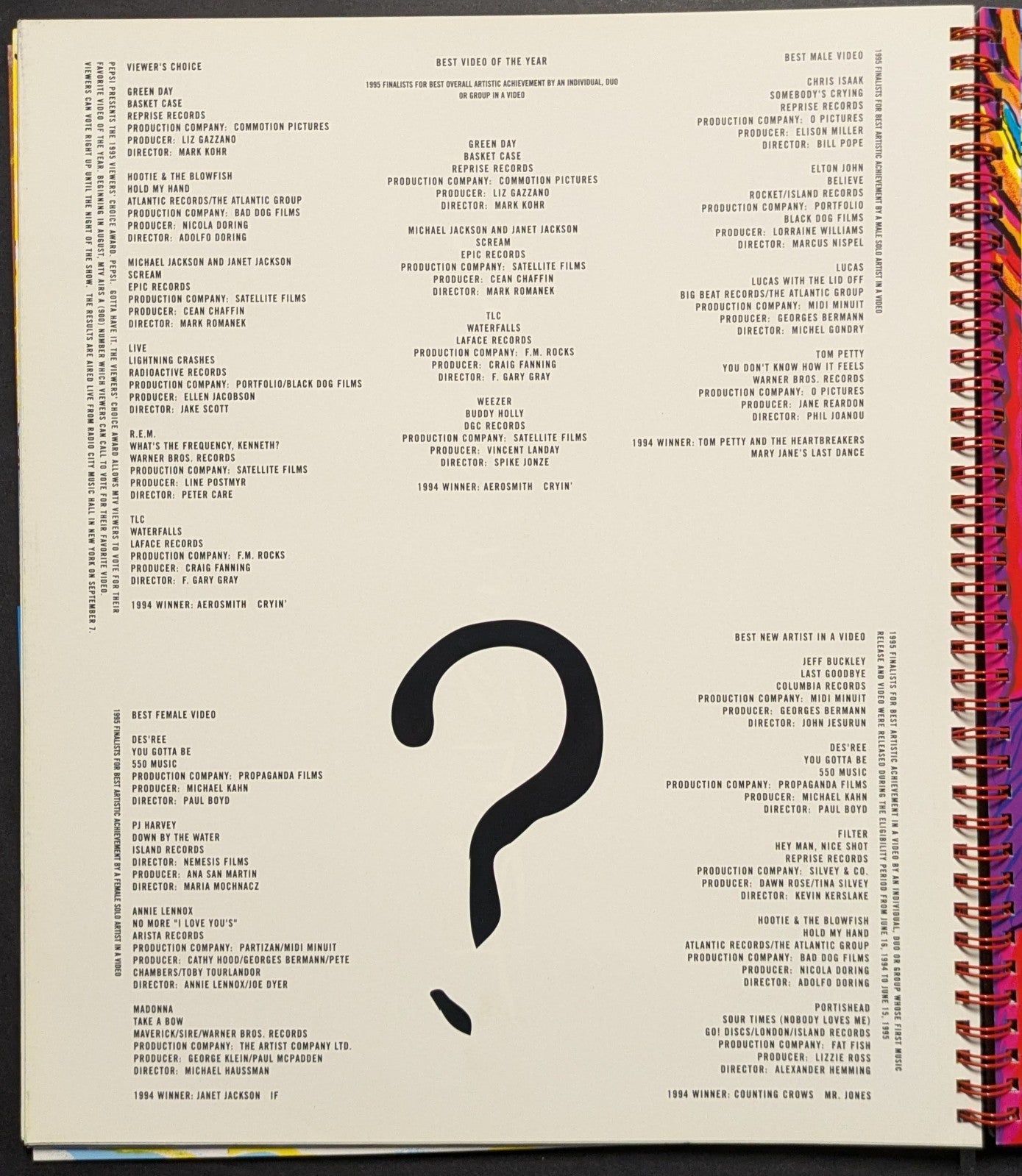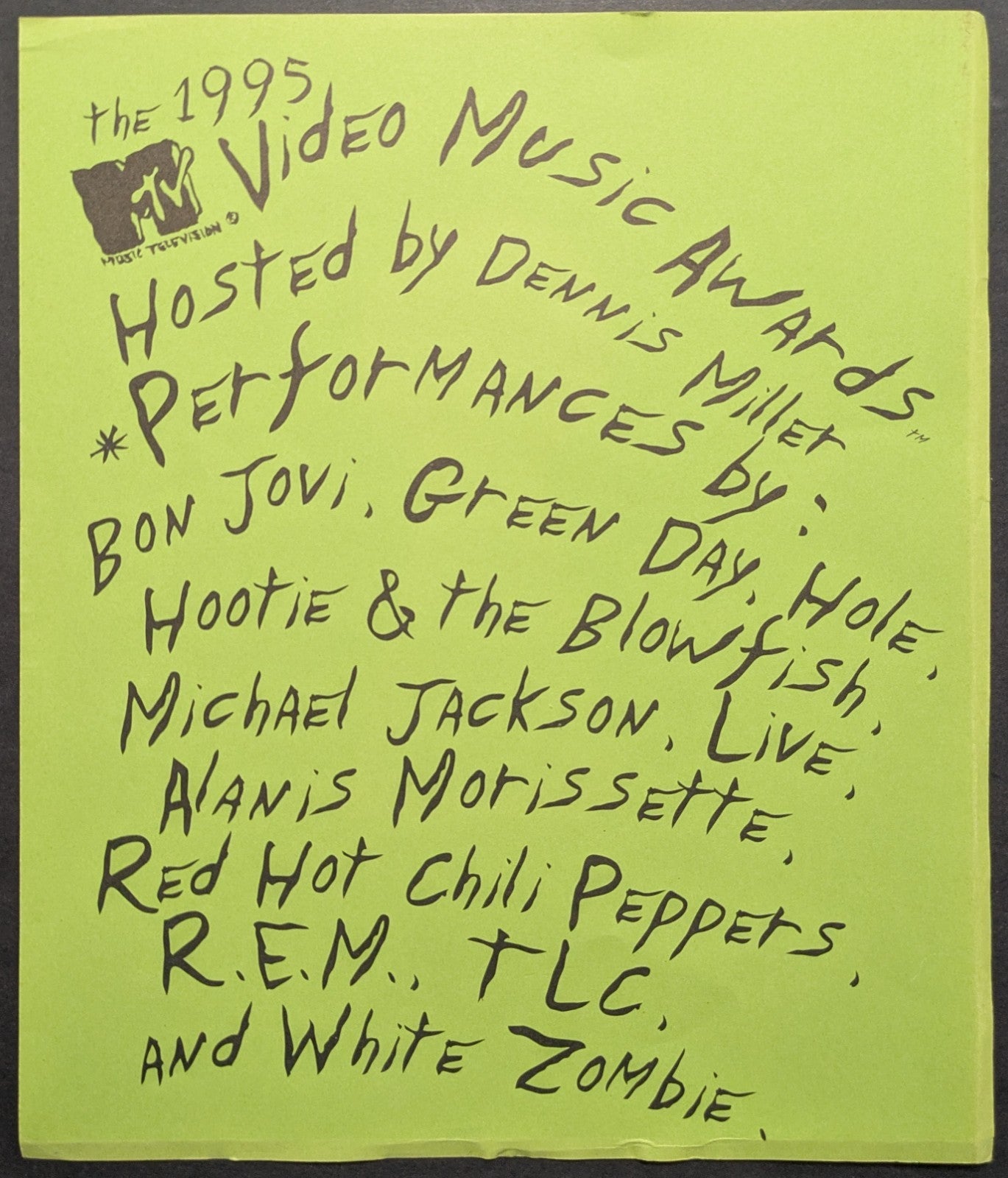• Vintage 1995 MTV Video Music Awards program with separately issued lineup sheet