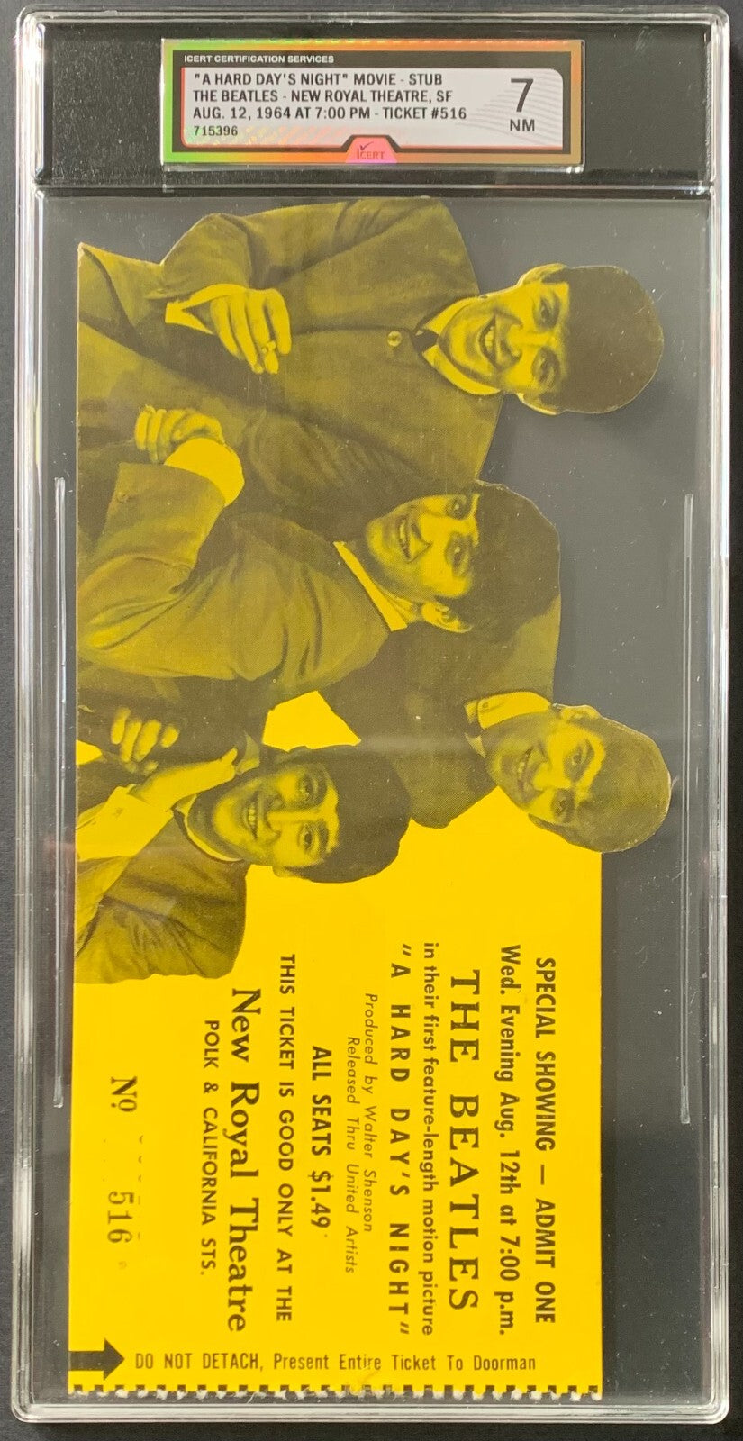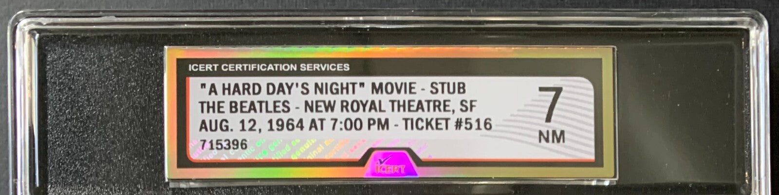 - 1964 Beatles A Hard Day's Night Movie #516 Ticket Stub iCert 7 NM