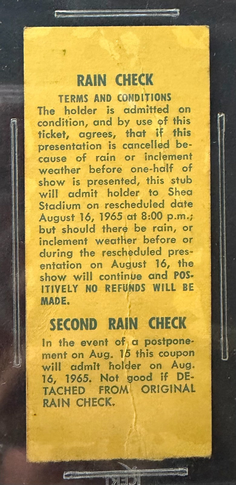 - Ticket stub for an August 15th, 1965 concert at Shea Stadium in New York