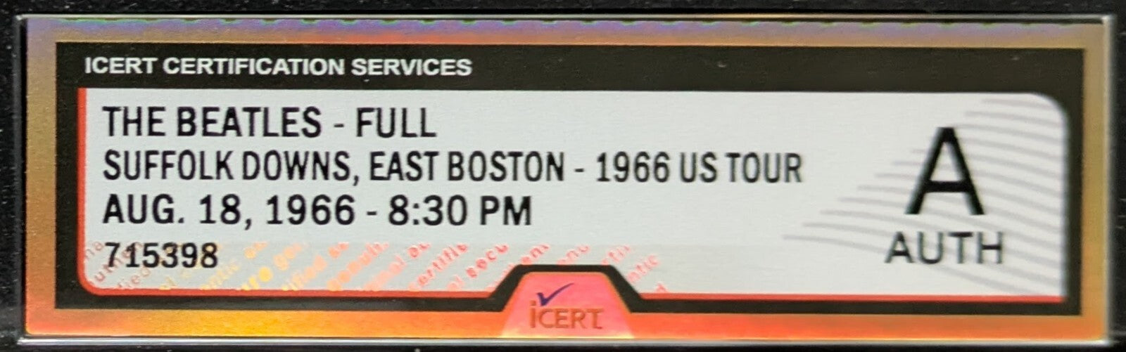 - Excellent condition; slabbed and authenticated by iCert, some tape residue on back of ticket, some corner and edge wear
