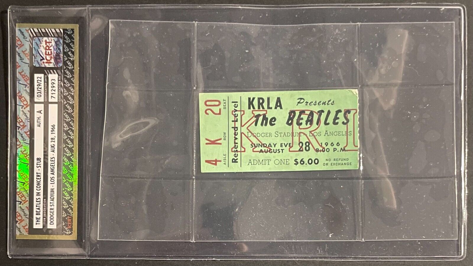 • August 28, 1966 Dodger Stadium The Beatles slabbed concert ticket, slabbed and authenticated by iCert
