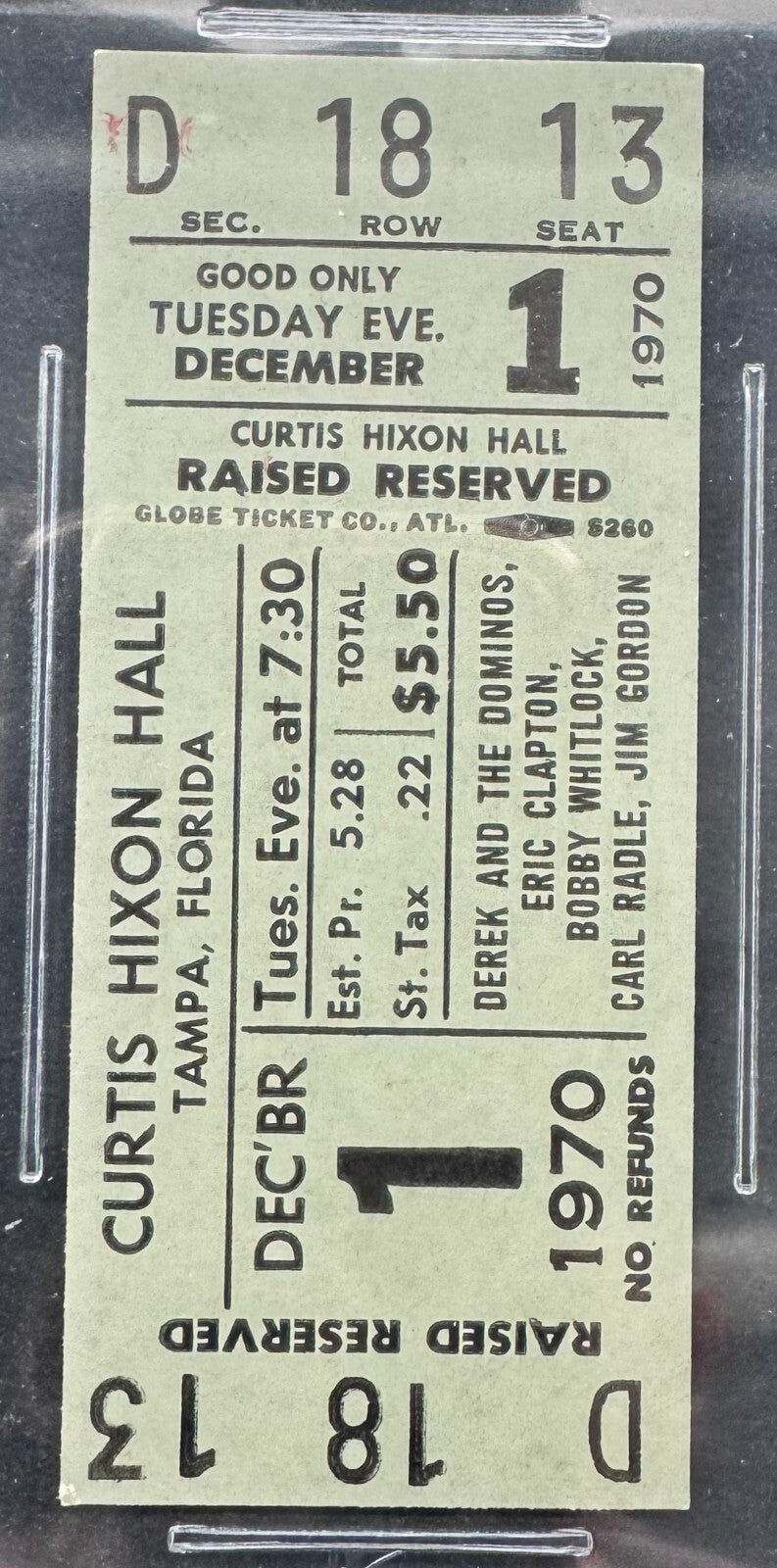 - Dec. 1, 1970 concert ticket at Curtis Hixon Hall in Tampa FL