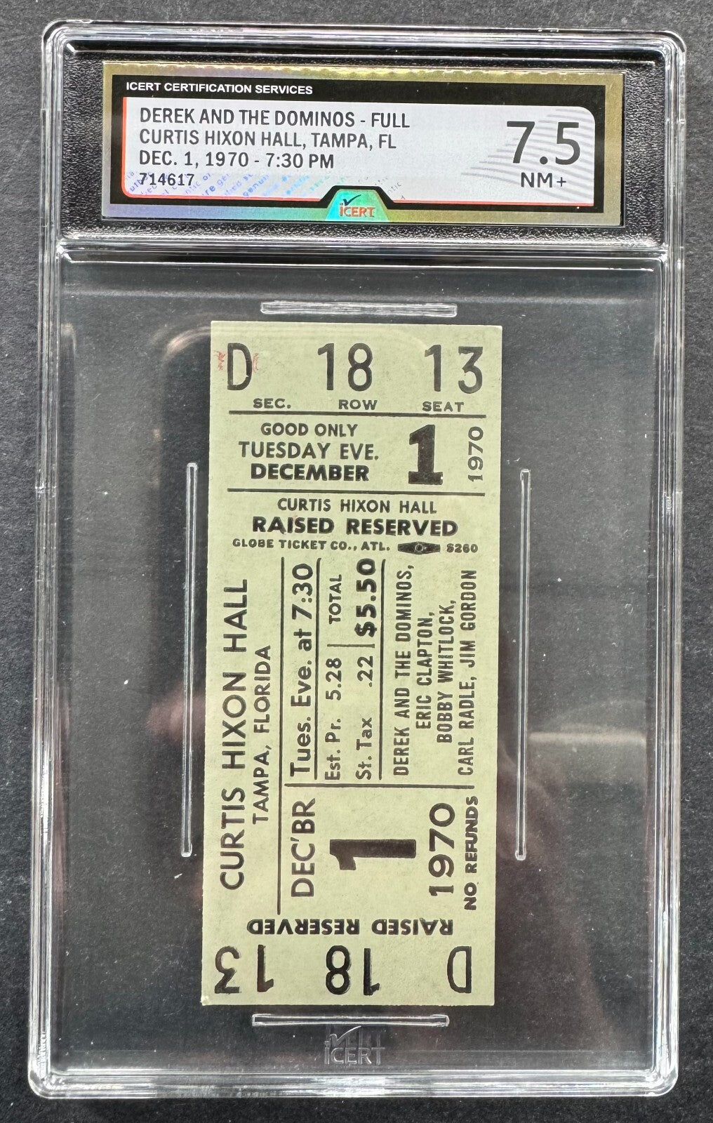 - 1970 Derek And The Dominos Full Ticket iCert 7.5 NM+