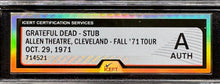 - 1971 Tour Grateful Dead Ticket Stub iCert A Auth