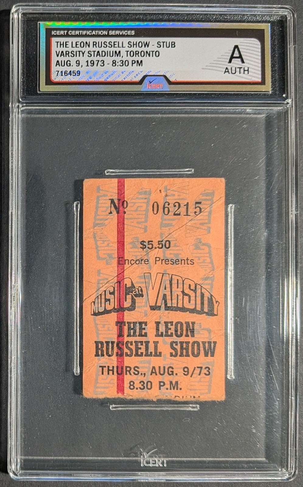 - Ticket stub for Aug. 9, 1973 concert at the Varsity Stadium in Toronto for The Leon Russell and Mary McCreary show