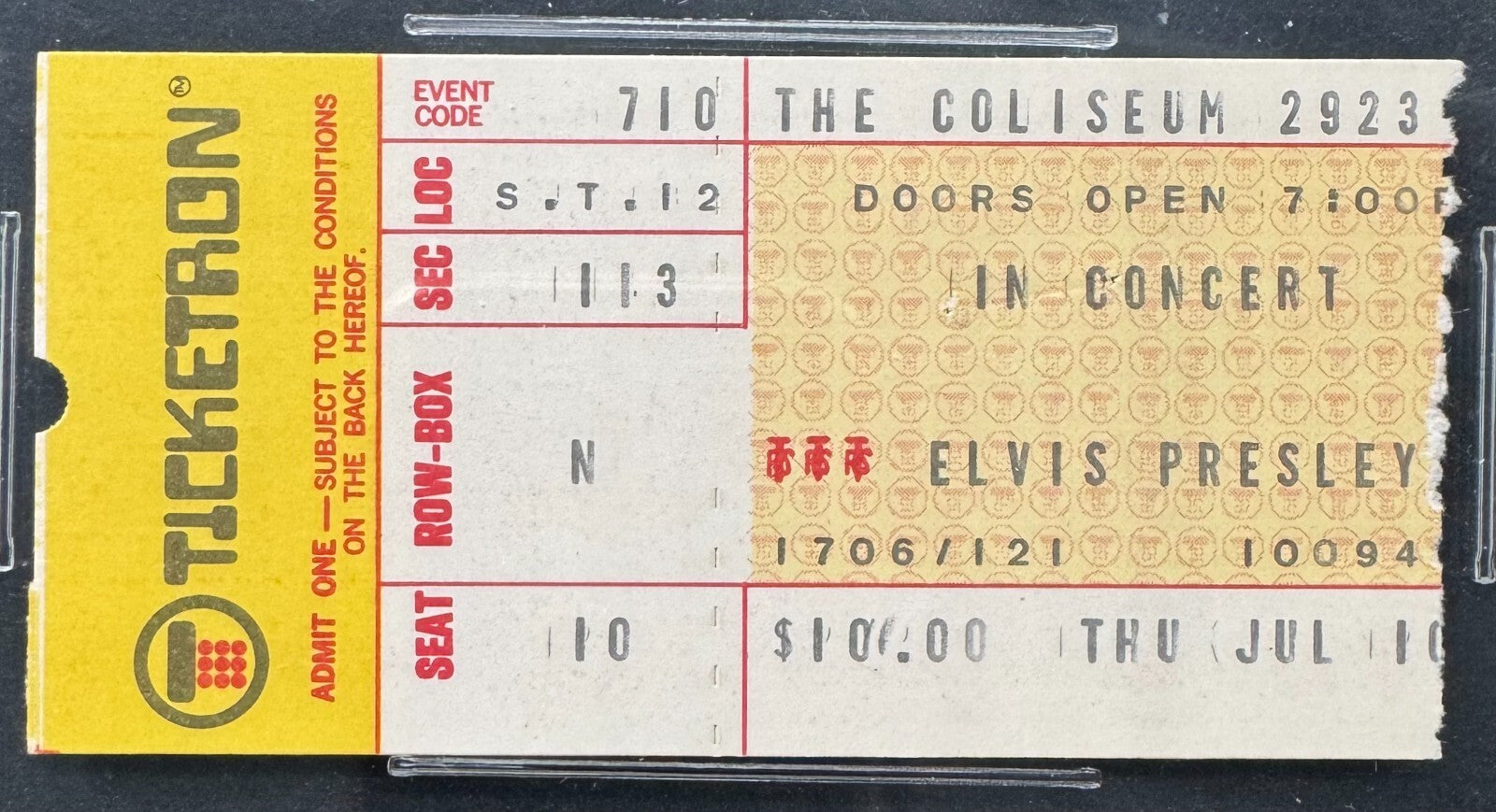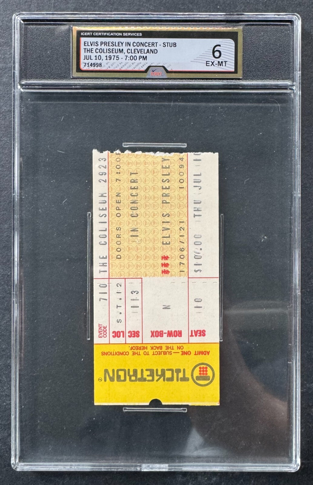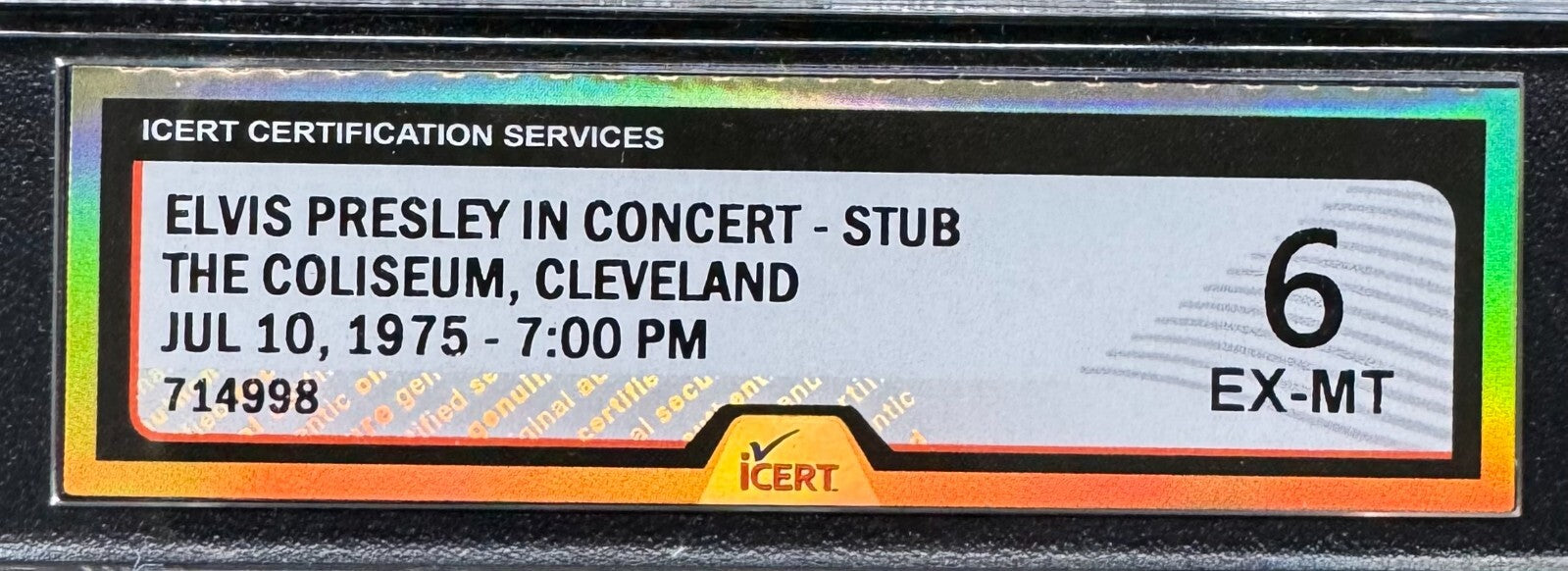 - 1975 Elvis Presley In Concert Ticket Stub iCert 6 EX-MT