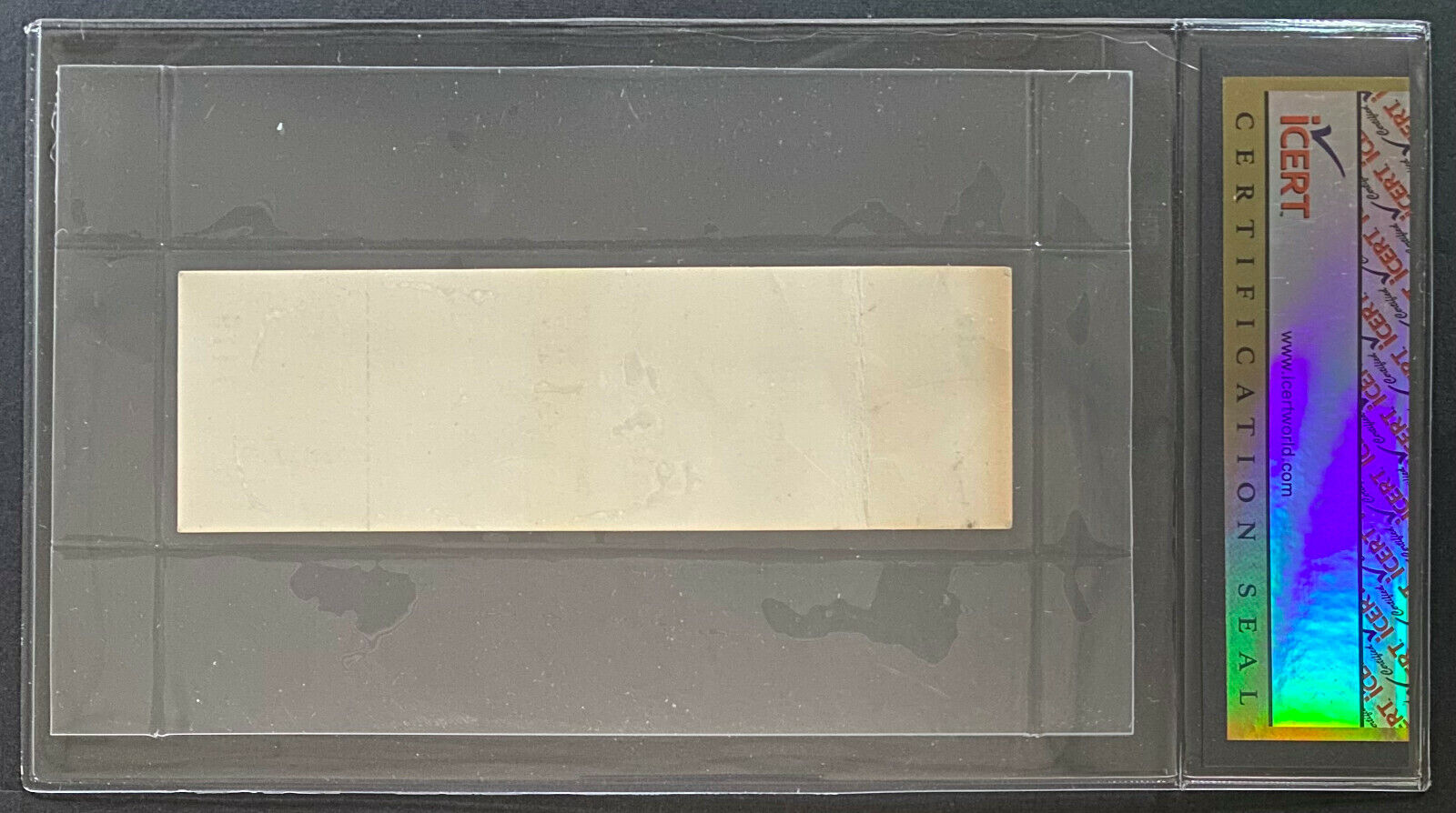 • Slabbed and authenticated by iCert. Ticket itself is in very good condition with some light discolouration along the top edge as well as a notable horizontal folding crease near the top. Full and unused with no rips or tears. iCert #711923